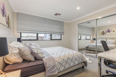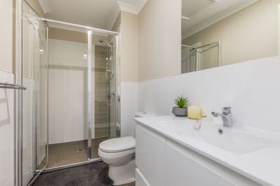 Situated on the top level are the three bedrooms. The main bedroom offers plenty of storage and is serviced by its own ensuite. Bedroom two offers plenty of space and includes a built-in wardrobe and study nook, while bedroom three is bright, spacious, and complete with built-in wardrobe. These two bedrooms are serviced by the modern bathroom.