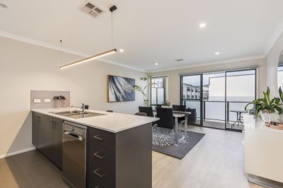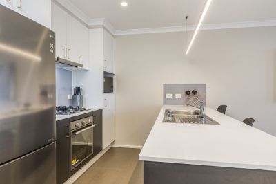 On level two is the full modern kitchen with ample bench space, storage, stone bench tops, stunning drop strip light above breakfast bar, gas cooktop and dishwasher. Off the kitchen is the bright open-plan living/dining area that flows out through glass sliding doors to one of the sunny balconies with plenty of space for entertaining. To the rear of the kitchen is the separate formal lounge room which flows out to the second balcony.