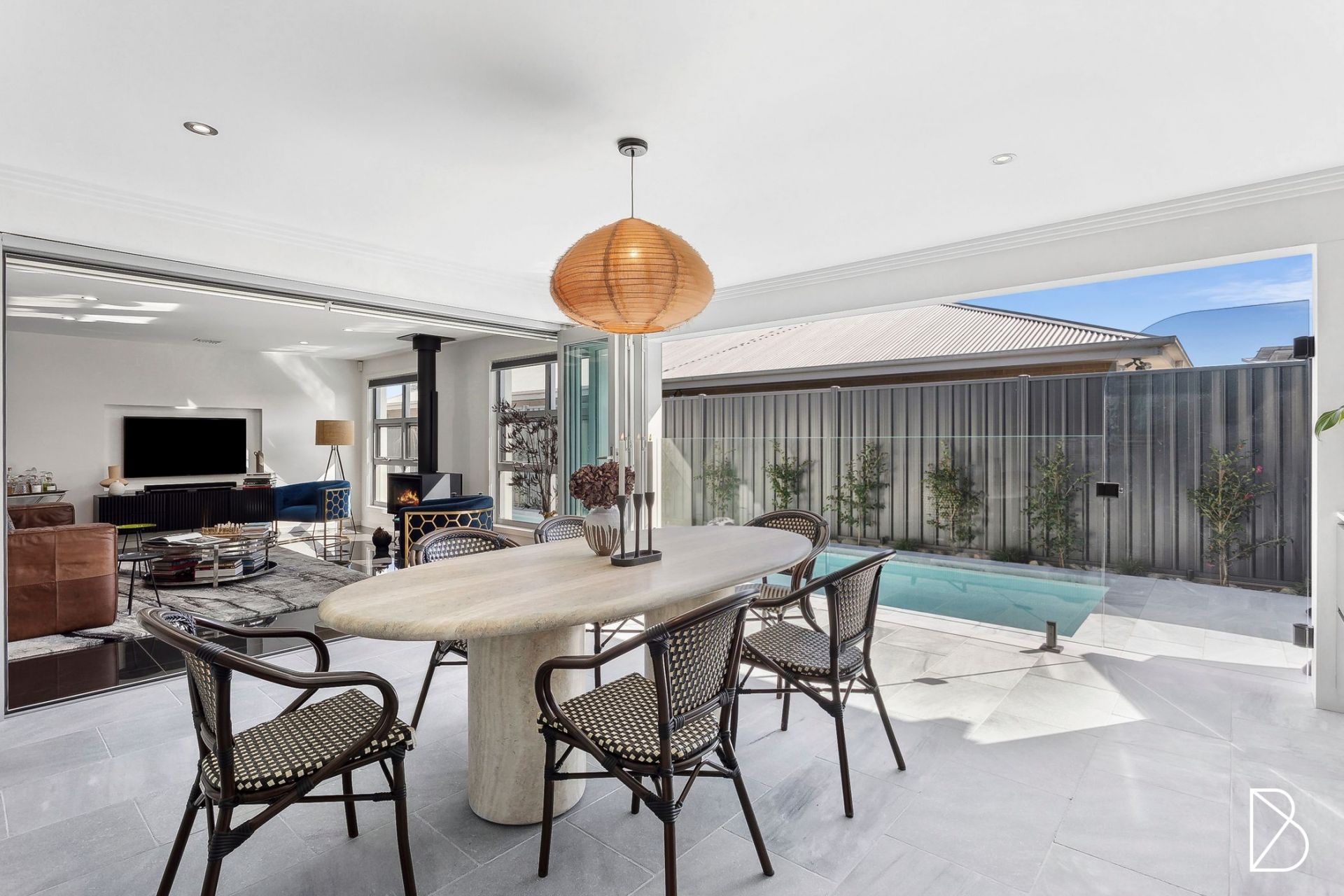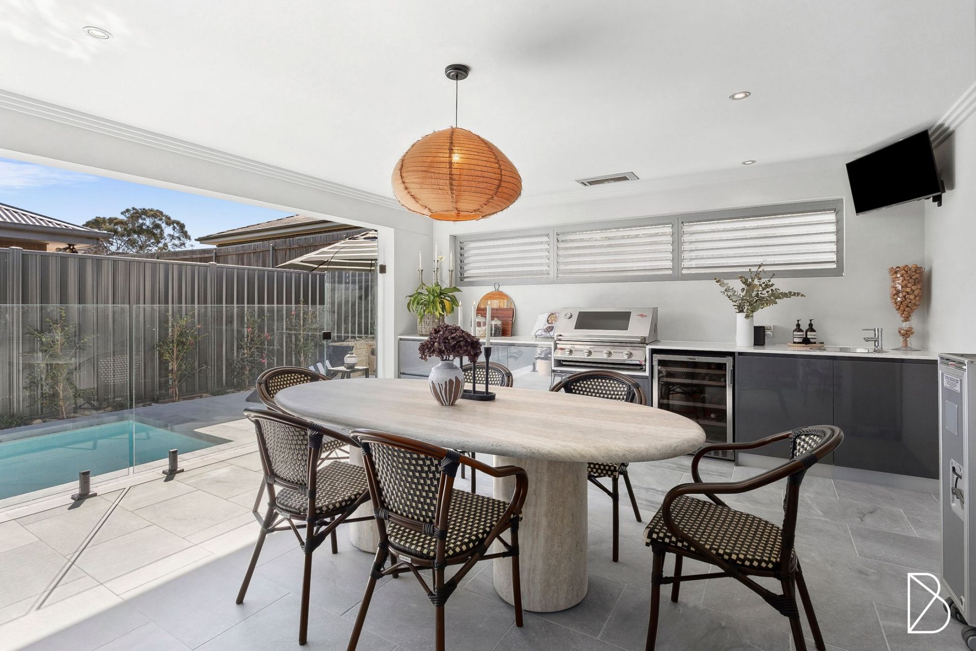 • Covered outdoor entertaining area, complete with outdoor kitchen and marble tiling with concertina doors creating excellent indoor/outdoor connection
