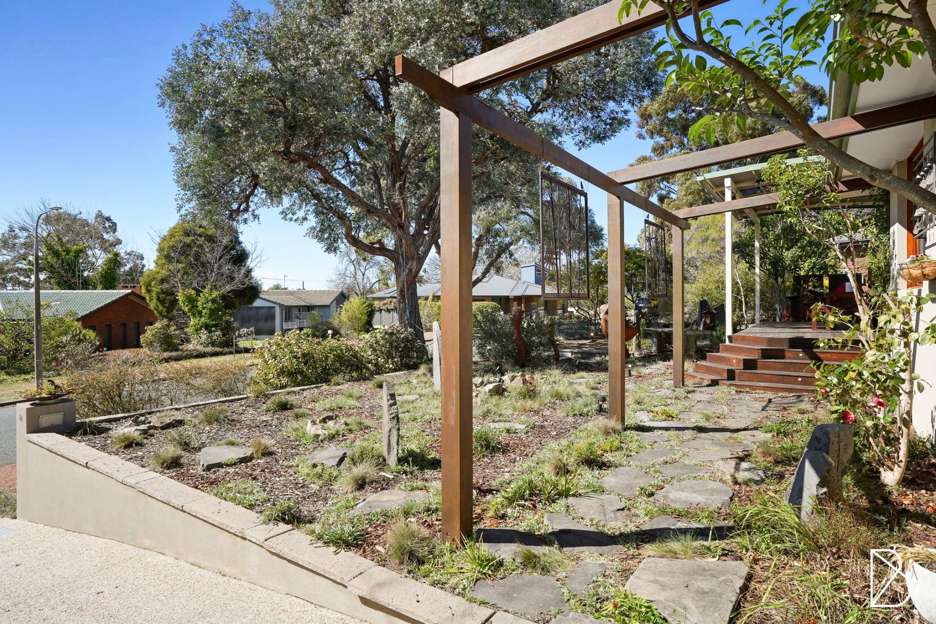 - easy care landscaped front yard with Bluestone feature rockwork