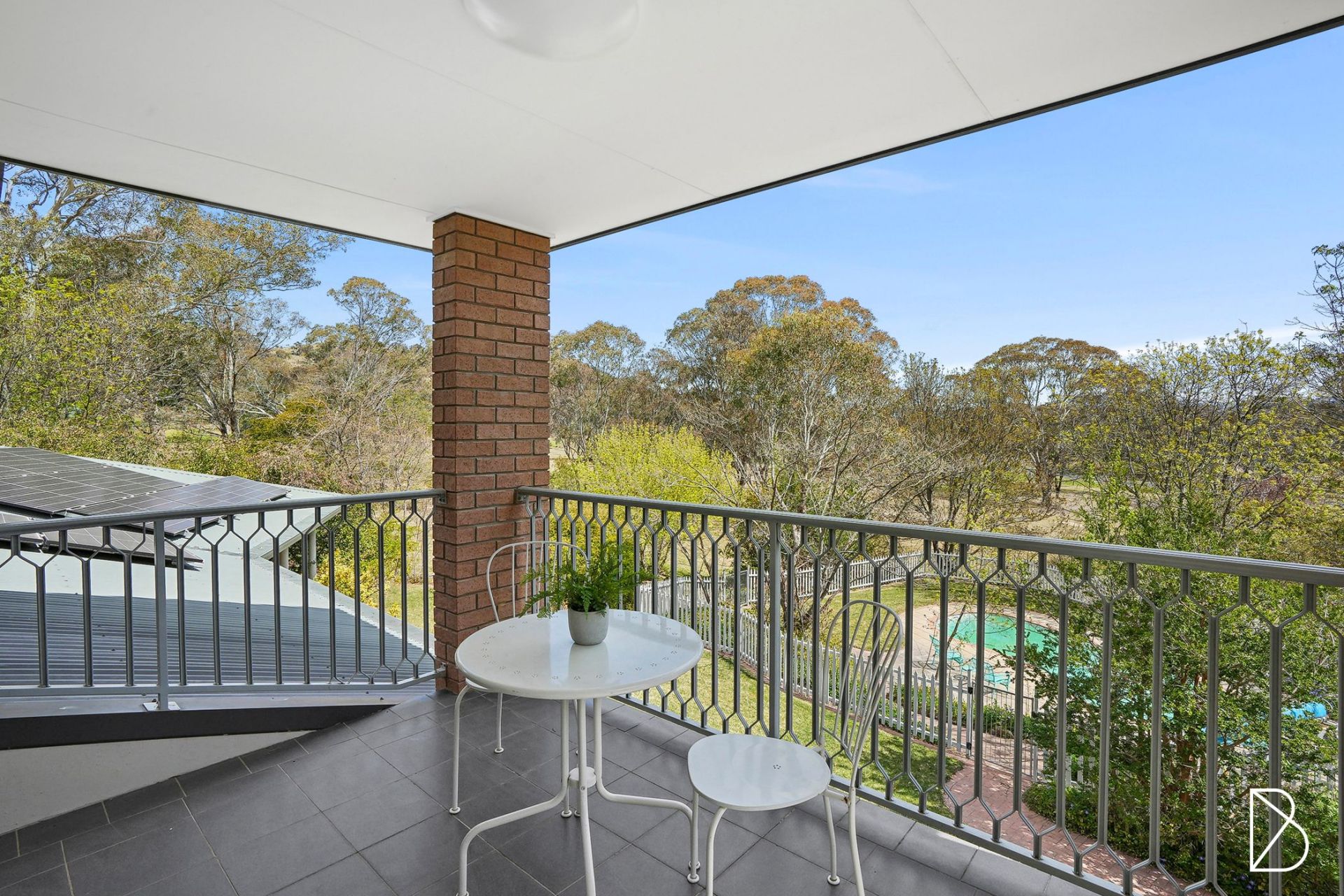 - covered entertaining area at the front of the house overlooking the pool, as well as the rear