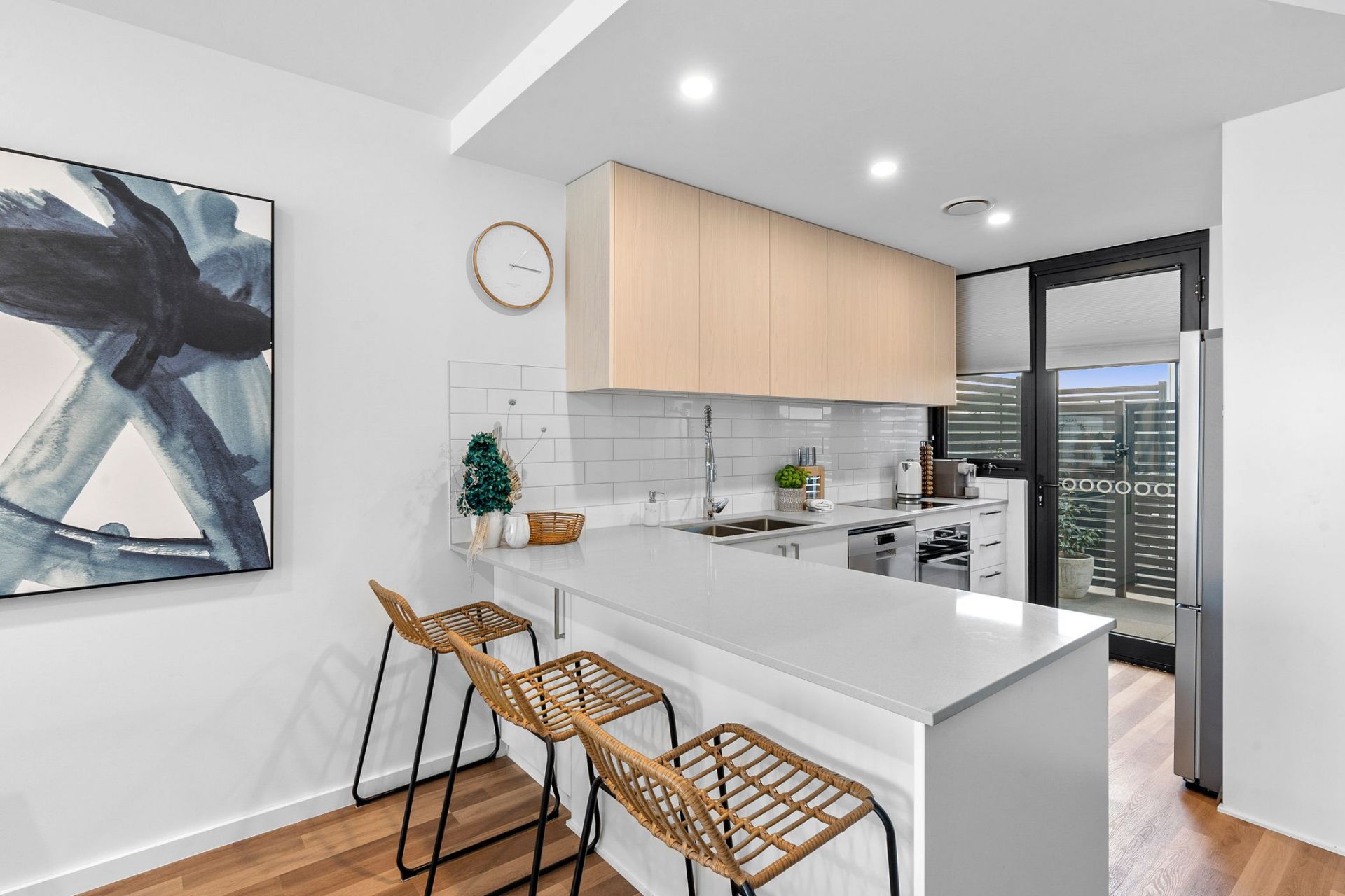 This superbly appointed, tri-level terrace home in the Shoji complex offers a prized northerly orientation, affording year-round comfort and an abundance of natural light. Thoughtfully designed by architects Judd Studio and with only one adjoining neighbour, the feeling of space is accentuated by floor to ceiling windows, a stunning open tread timber staircase and the tasteful modern colour palette utilised throughout.