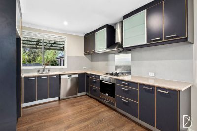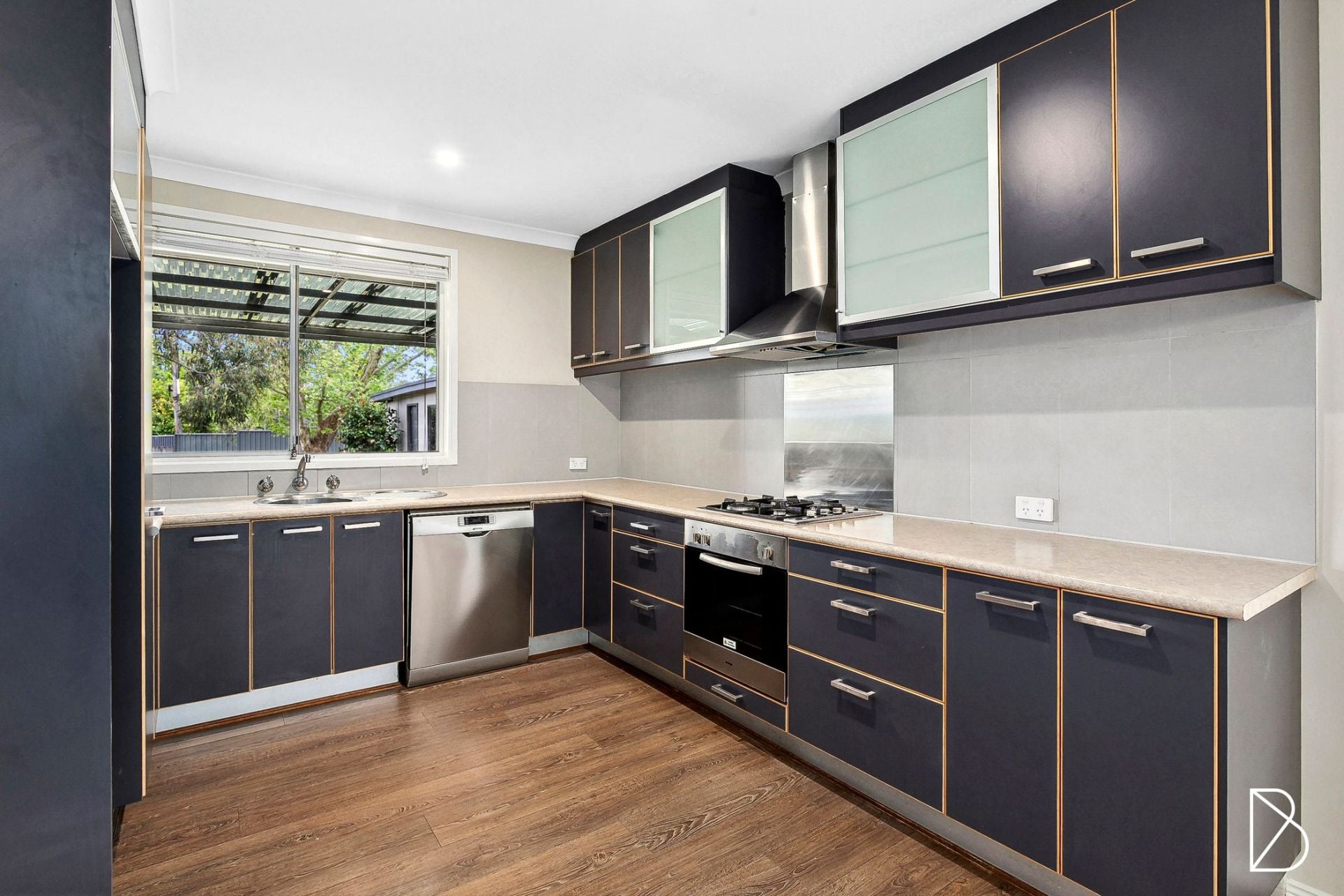 - Large kitchen with gas hob, tiled splashback, plenty of bench space, dishwasher, and lots of storage