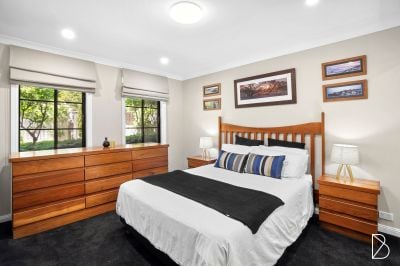 Accommodation is spread across all three levels, delivering a rare and welcome privacy, with a top floor main suite enjoying both a walk-in robe and ensuite, complete with spa bathtub, two tone tiling, and good-sized vanity with storage. There is also a ground floor and 2 first floor bedrooms, all with built in robes, sharing use of the main bathroom, also featuring a bathtub, as well as a separate shower and privacy screen. An internal laundry with additional storage and double lock up garage with internal access round out this quality Campbell offering, with a welcoming charm and tranquil setting that is sure to impress at first sight.