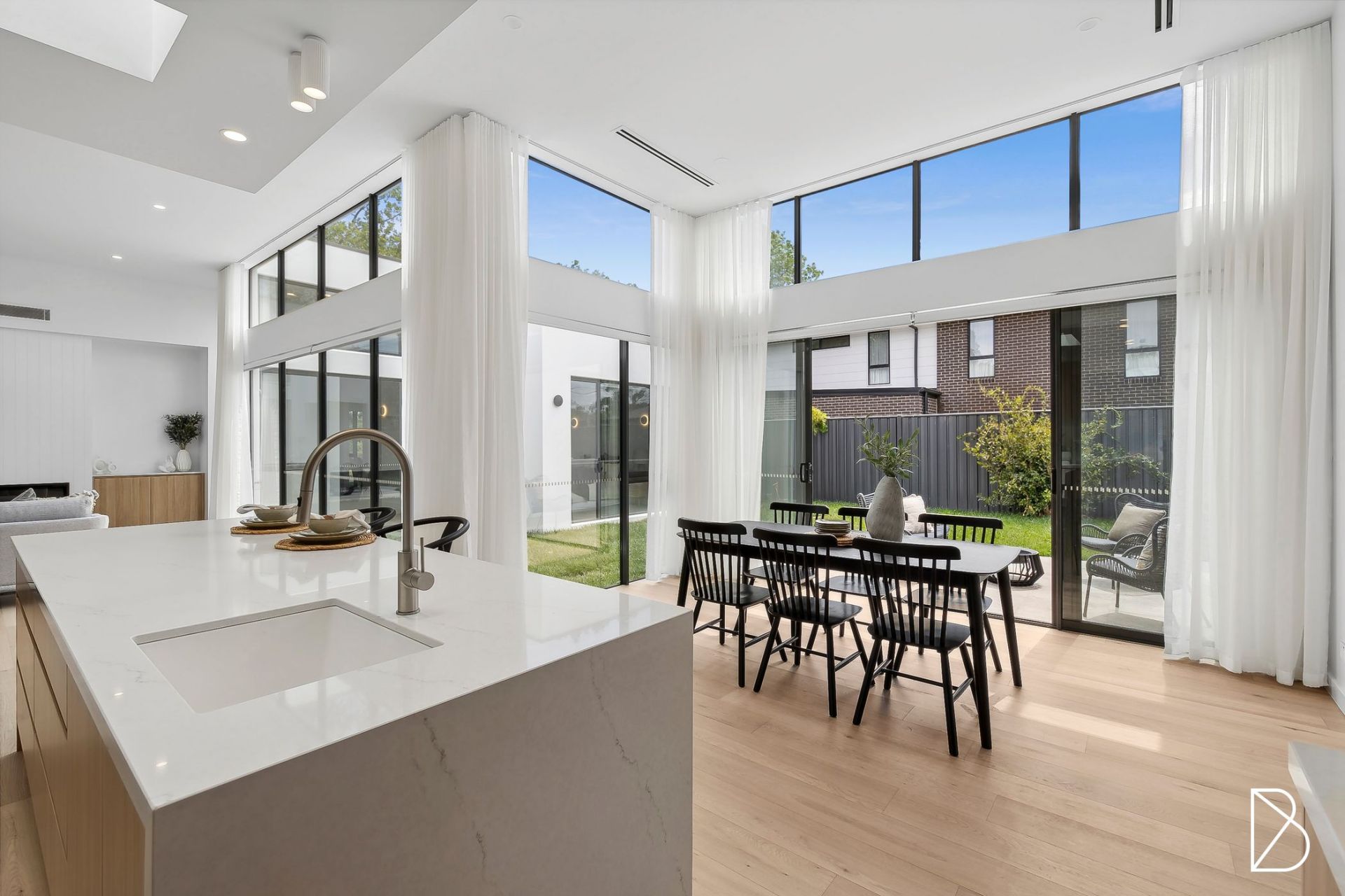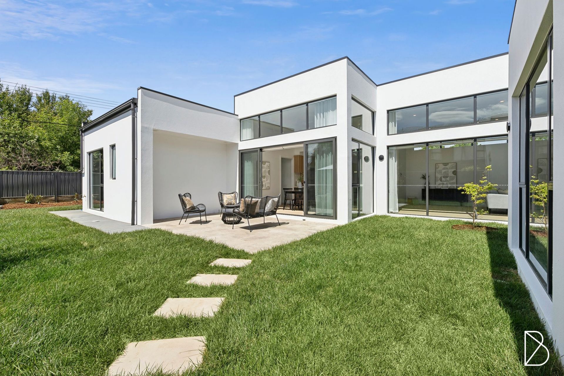 Impeccable design meets immaculate finish in this newly completed bespoke built by UpClass Constructions, this single level family residence is nestled in the heart of ever-popular, family friendly Downer and close to light rail, central Dickson, quality schools, as well as one of the most popular suburban communal hubs in the Inner North. Expansive, light-filled living takes centre stage with multiple and versatile spaces offering contemporary tones, gorgeous wooden floors and high ceilings, including a spacious open plan family, dining and kitchen hub, opening out to the alfresco patio, as well as an additional large living room and adaptable games room. The entertainers' kitchen wants for nothing, blending elegant design with elite function, keeping the home chef well connected to family friends whilst enjoying a butler's pantry, stone benchtops, waterfall edge eat-at kitchen island bench, induction cooktop, twin wall ovens, stunning timber cabinetry and illuminating skylights.