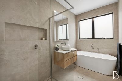 The main suite is privately set away and enjoys resort style proportions, complete with a stunning walk-in robe and quality ensuite, featuring floor to ceiling marble look tiling, under floor heating, recessed shelving, and floating stone top vanity with dual above bench basins. The main bathroom is completed to the same high standard, with the welcome addition of a freestanding bathtub, and services 2 of the additional 3 bedrooms, with the third enjoying both a walk-in robe and its own quality ensuite. An internal laundry with good storage and double lock up garage with internal access headline a long list of additional features that must be experienced first-hand to be truly appreciated, making this unique and welcoming family triumph an absolute must to inspect.