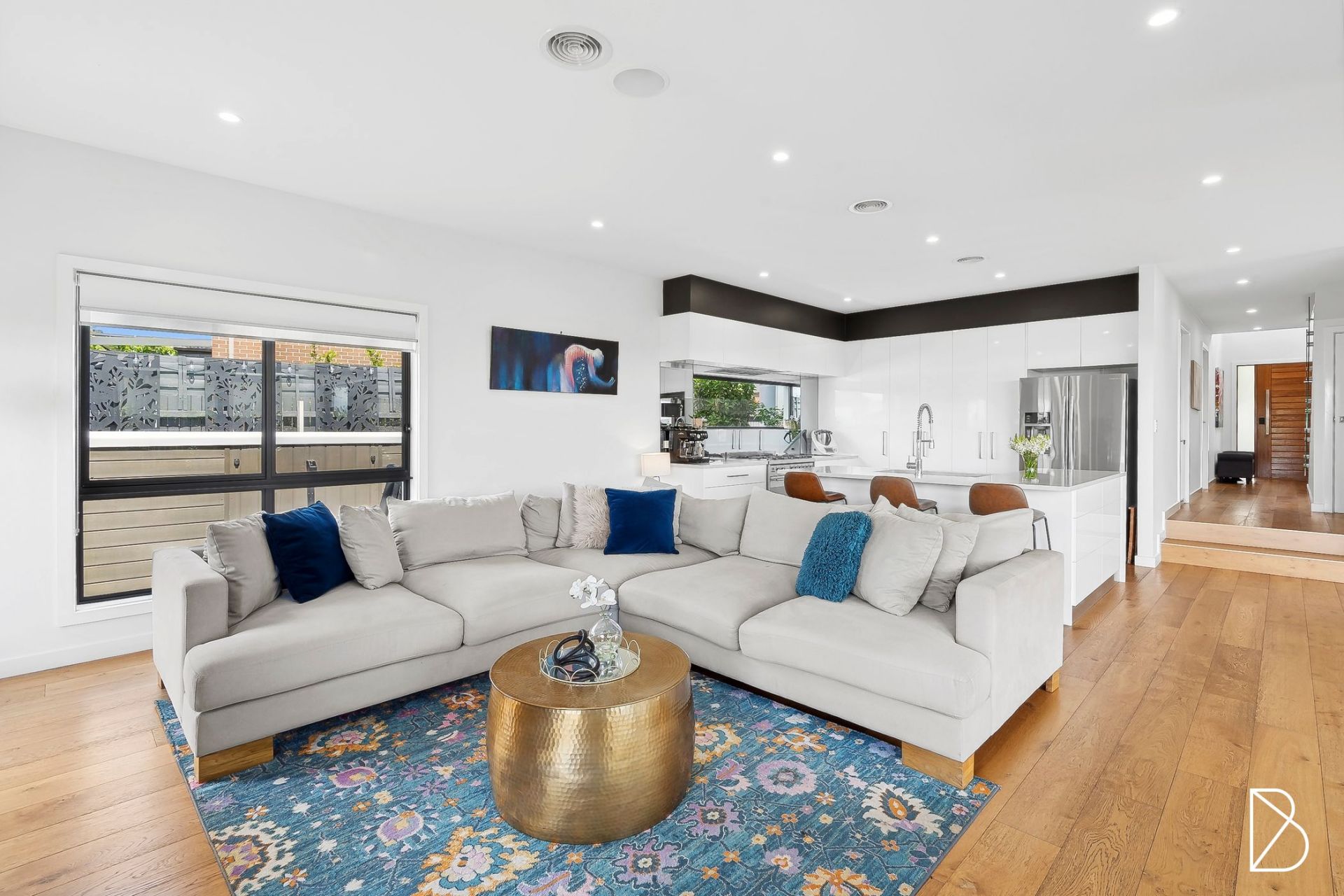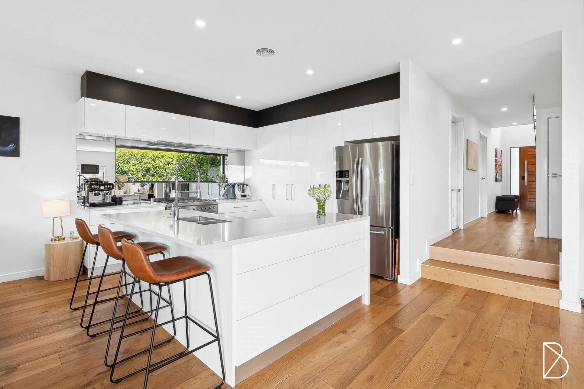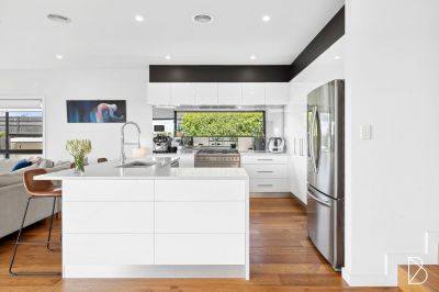 Occupying a spacious 538m2 parcel of land with a generous backyard, this four bedroom, three bathroom family home presents the perfect blend of grand family proportions with sundrenched alfresco living. Absolutely perfect for gathering with family and friends, the vast open-plan living area flows effortlessly through sliding stacker doors to the covered alfresco deck, that enjoys lashings of northern sun as well as the privacy of the hedged backyard.