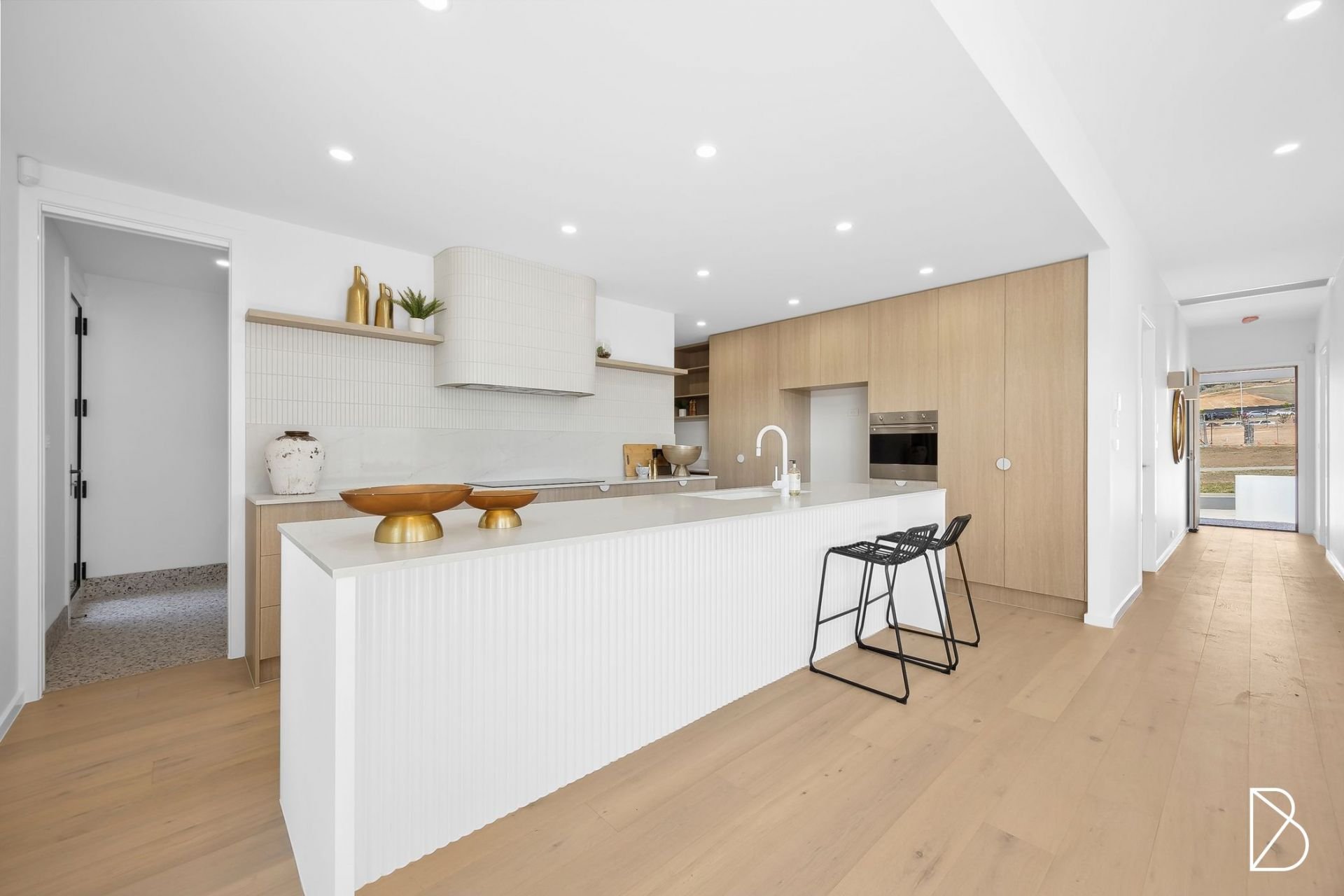 Situated in the fresh new Denman Prospect precinct, mere minutes from the local shops and reserves, and with some of Canberra's best arterial access to all points of the compass, uber convenience meets bespoke design in this well-appointed and visually striking family entertainer. Framed by eye catching curves, contemporary tones and abundant natural light, the versatile living includes a large central open plan lounge, dining and kitchen hub perfectly connected to generous alfresco, offering the perfect environ for enviable entertaining, with an additional family room adding even more flexibility to the home. The entertainer's kitchen is a triumph in form and function and keeps the home chef well connected to family and friends whilst enjoying stone benchtops, an eat at island bench, walk in pantry, all electric cooking, striking tiled splashbacks, and plenty of storage behind bespoke cabinetry.