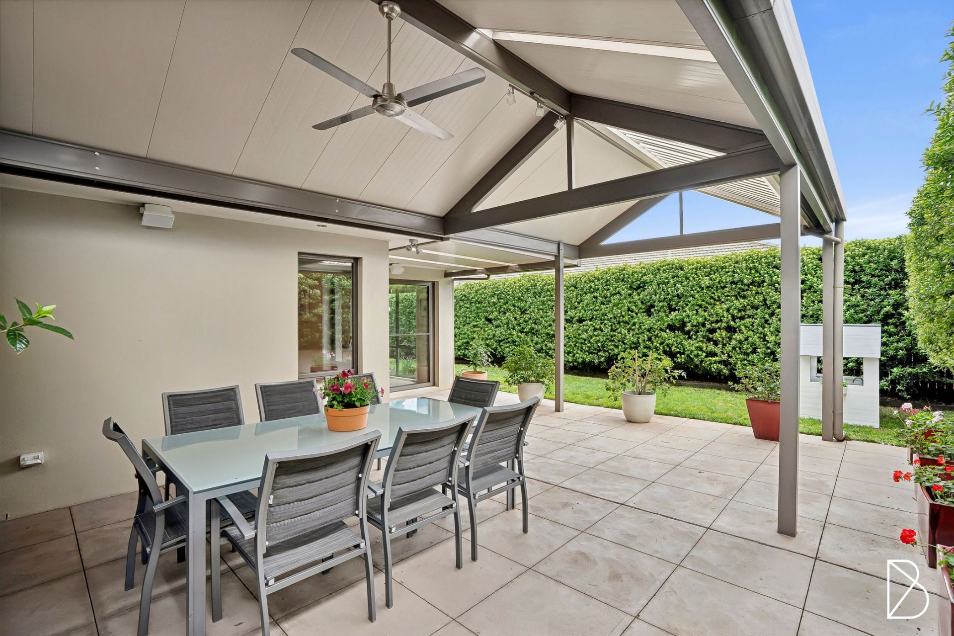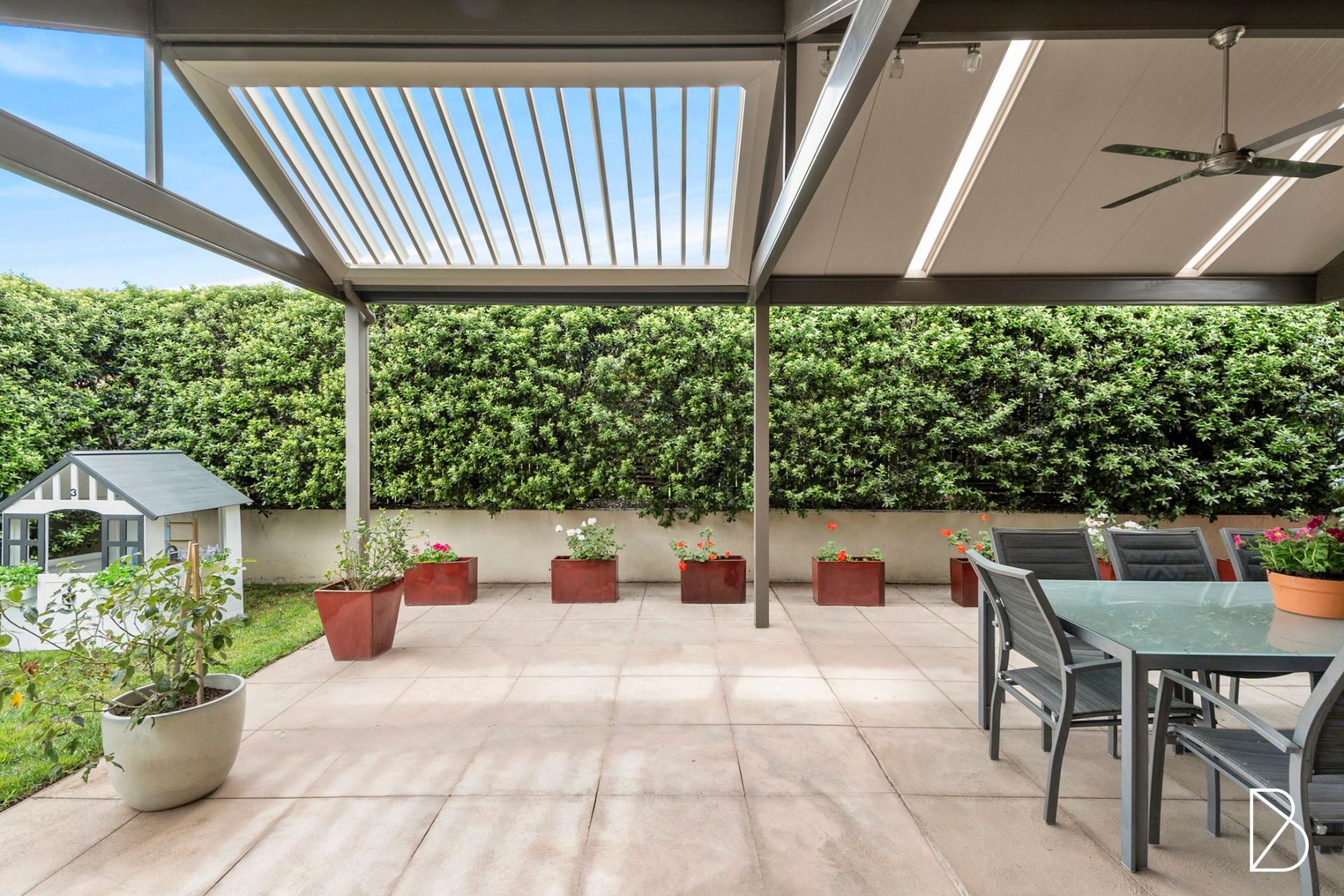 - covered paved entertaining area with Vergola