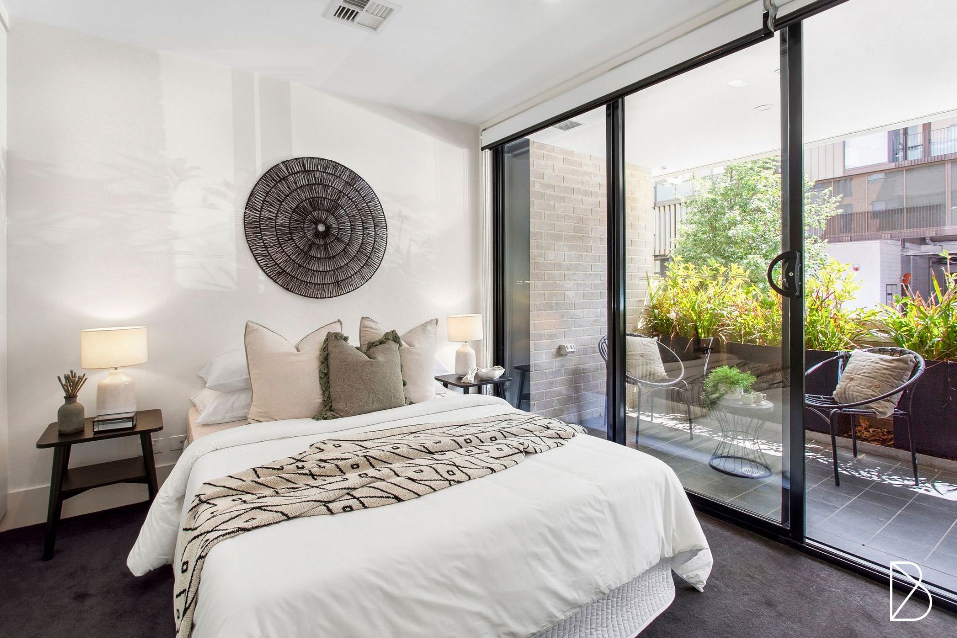 The spacious main bedroom offers ample built-in storage and direct access to the tiled, undercover courtyard, which not only provides the perfect space for outdoor relaxation but also boasts tranquil water views. An additional study nook is ideal for those working from home or in need of extra space for creativity or organisation. With 2.7m high ceilings and reverse cycle ducted air conditioning, this home is both comfortable and airy.