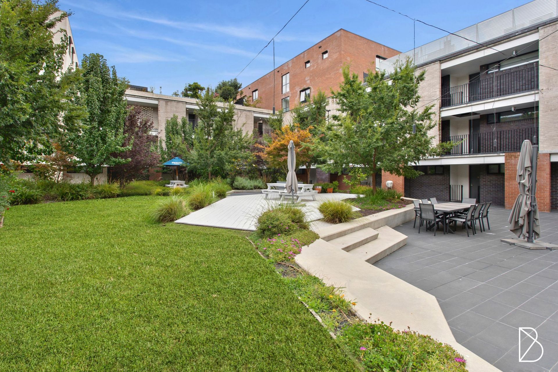 - North facing private courtyard with water views