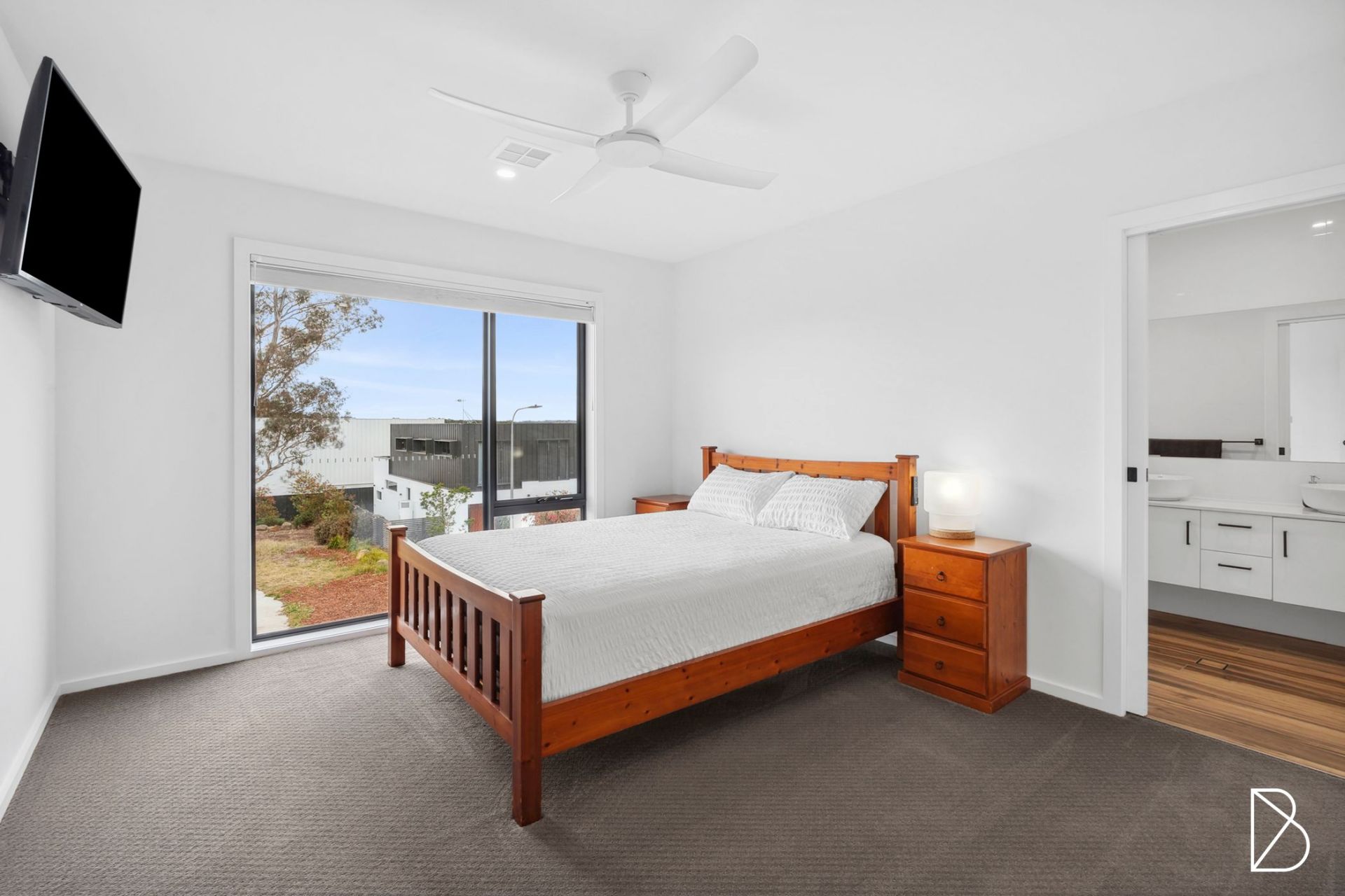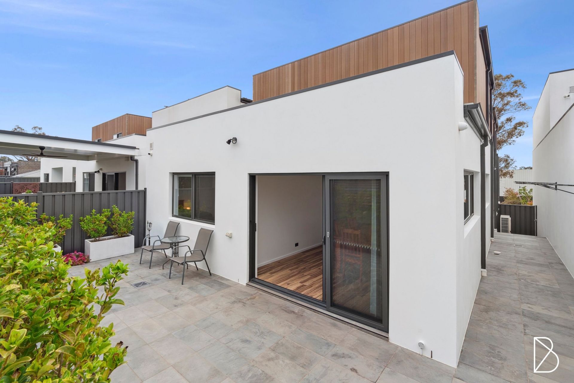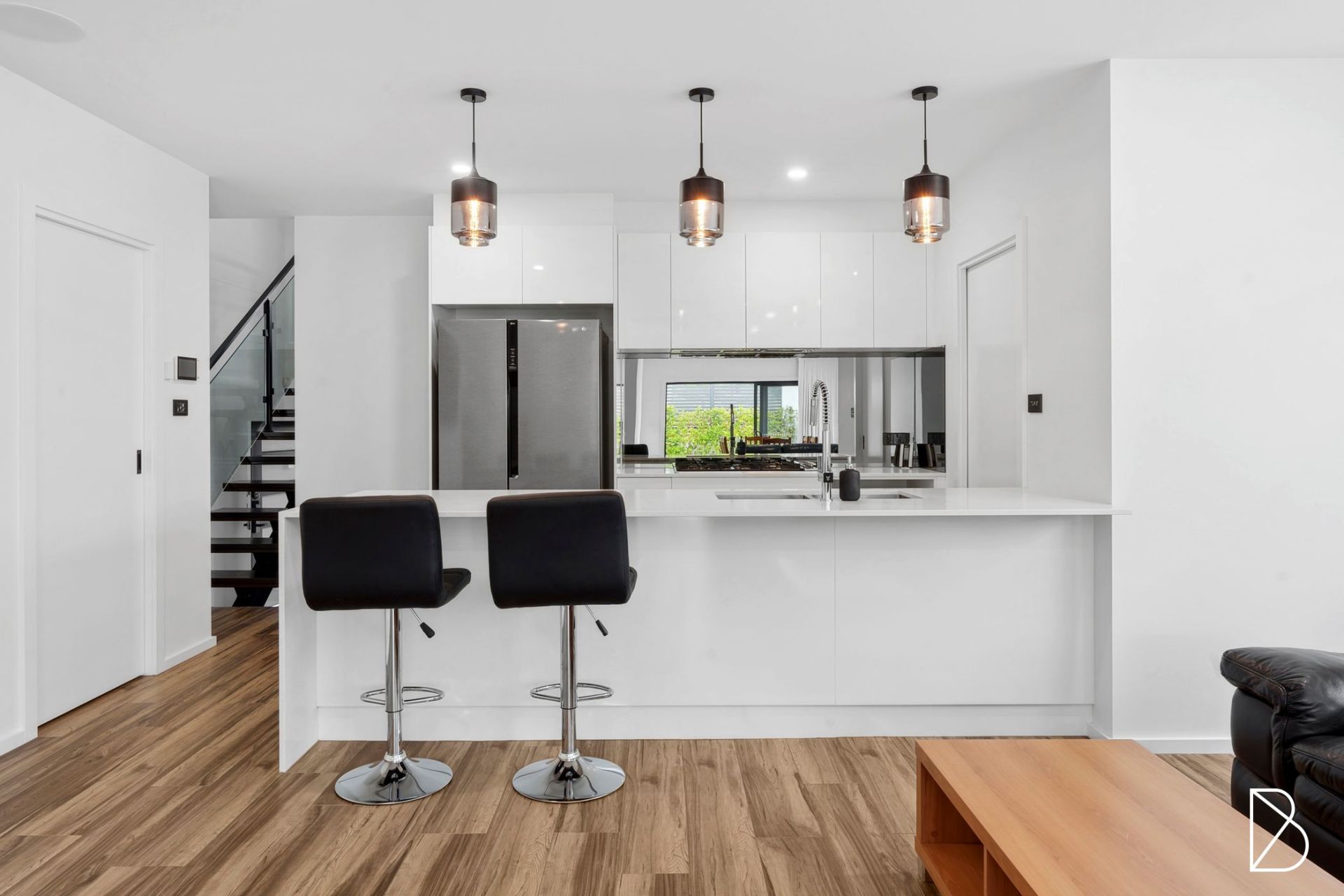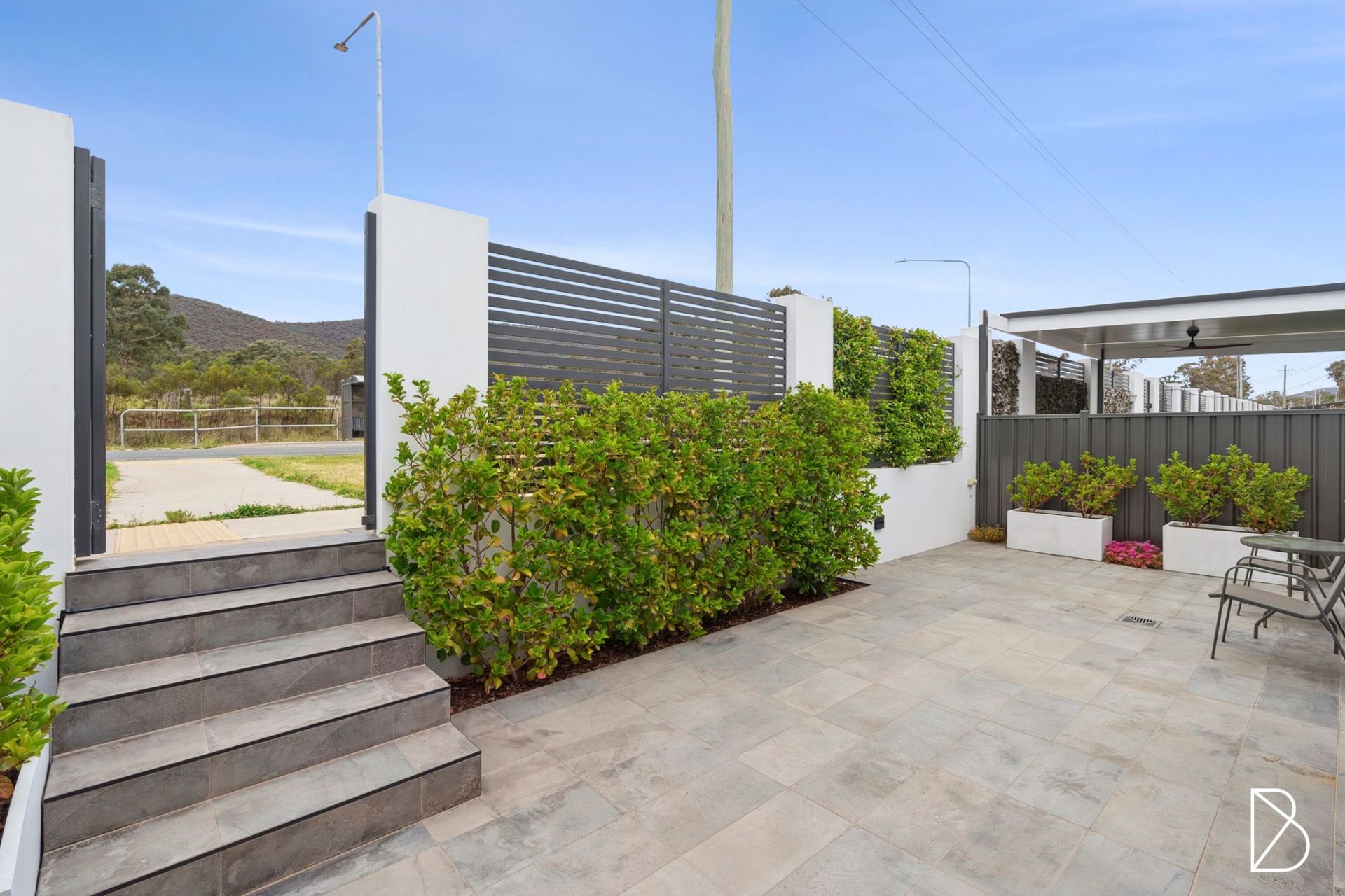 Nestled at the foot of Mount Majura Nature Reserve in a private cul de sac, and enjoying ultra convenient access to local schools, shops, abundant nature trails and with Dickson Central mere minutes away, this executive residence offers both premiere convenience and peaceful modern living. Designer timber look tiling and contemporary tones frame the large downstairs living and dining space, sharing an open plan with the quality kitchen, offering stylish pendant lighting, mirrored splashback, stone benchtops, waterfall edge breakfast bar, 5-burner gas hob, 1200mm oven, dishwasher, and plenty of storage throughout, and flowing out to a private alfresco courtyard. An additional upstairs living space with split level design and study nook add even more versatility to the floorplan.