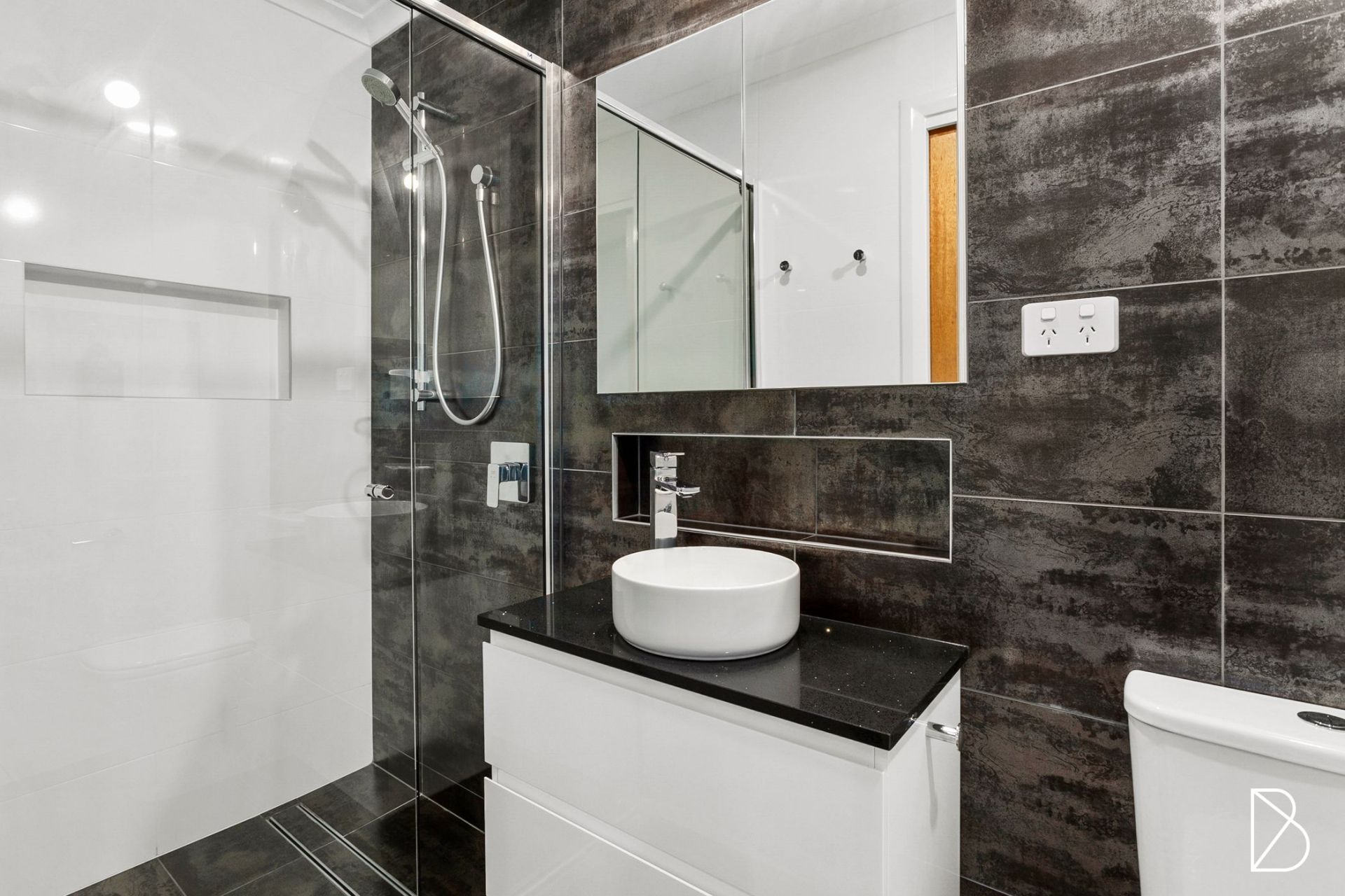The well-appointed main suite boasts dual walk-in robes and a luxurious resort-style ensuite, featuring a privacy wall design and a twin-basin vanity with excellent storage. A large downstairs bedroom includes its own ensuite and audio system cabling, and could also be used as a home theatre, large home office, teenage retreat, or for multi-generational living. Two additional bedrooms on the upper floor feature built-in robes, and share a central main bathroom, complete with a separate toilet for added convenience.
