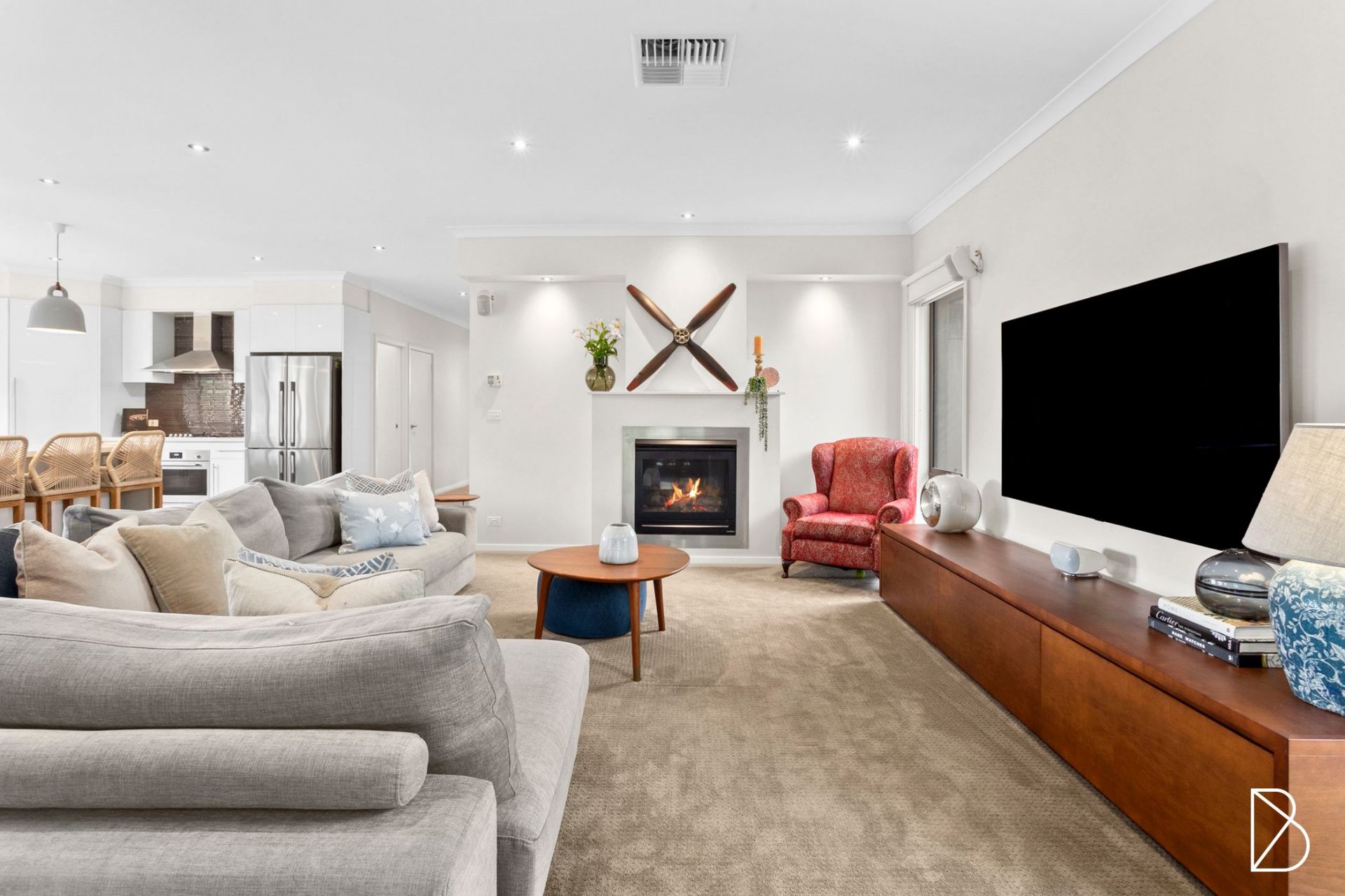 - Underfloor heating with individual digital thermostat control in each room, plus fireplace with Caesarstone mantel and remote control (with timer function)