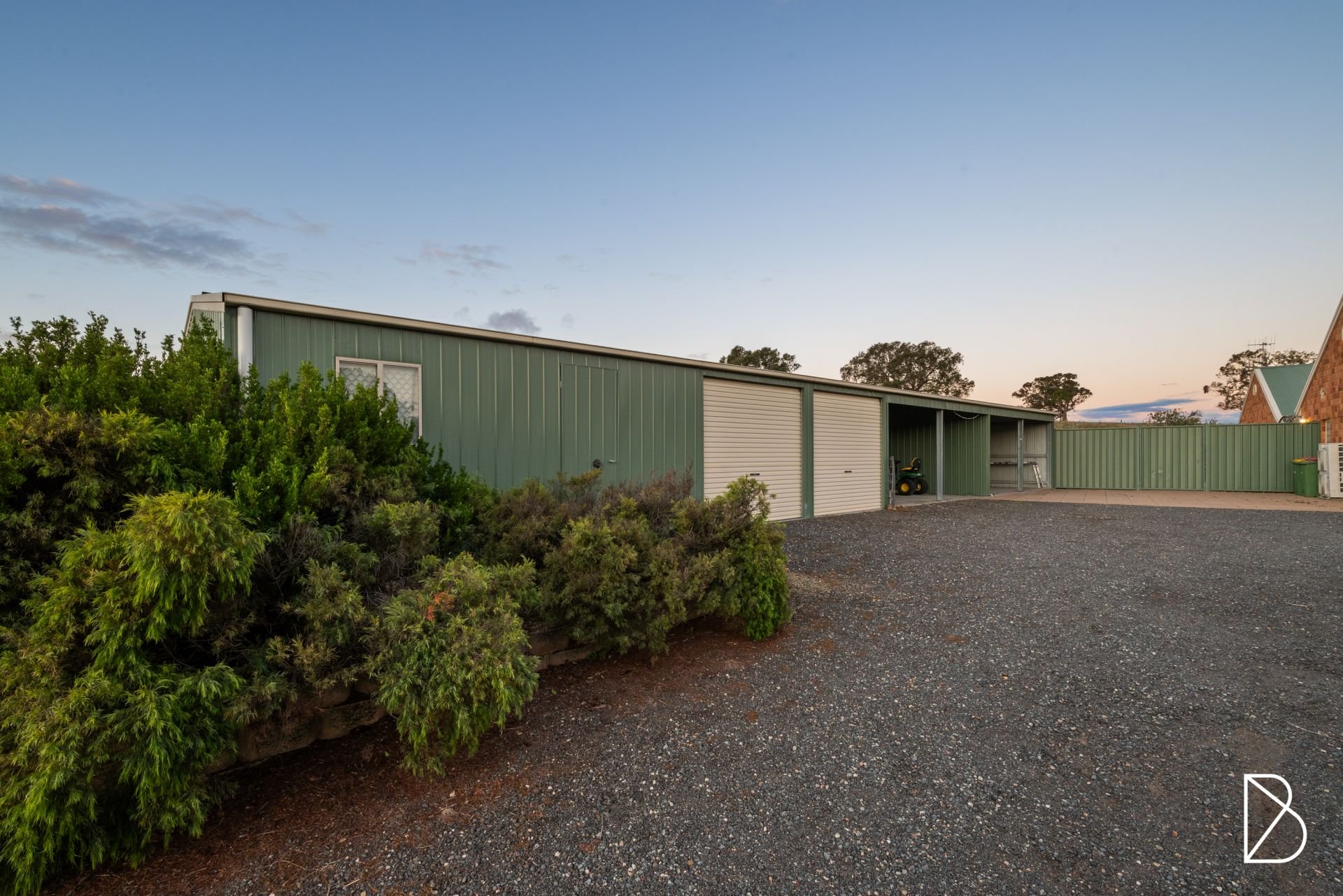 - Large shed with two roller doors, drive-through carports and workshop space.