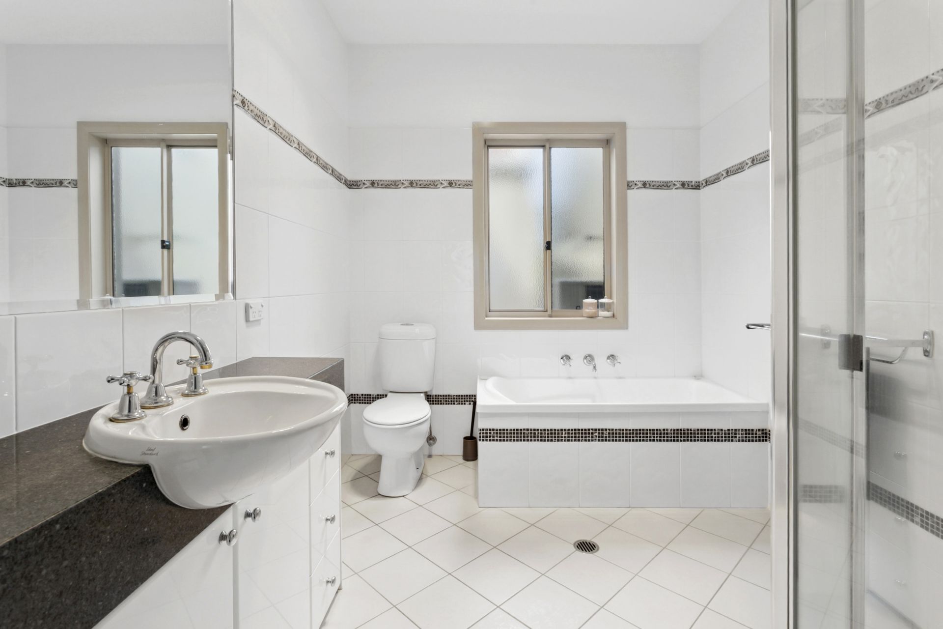 • Main bathroom with bathtub, separate shower and large vanity with good storage + convenient separate toilet