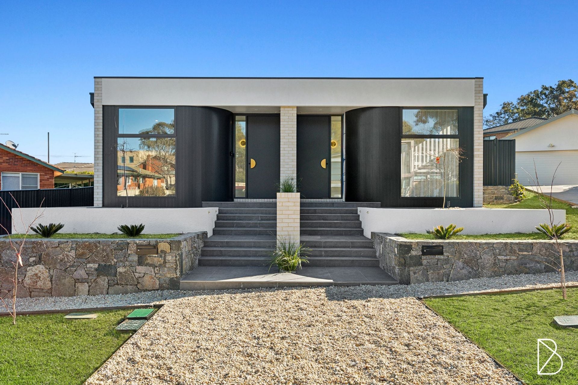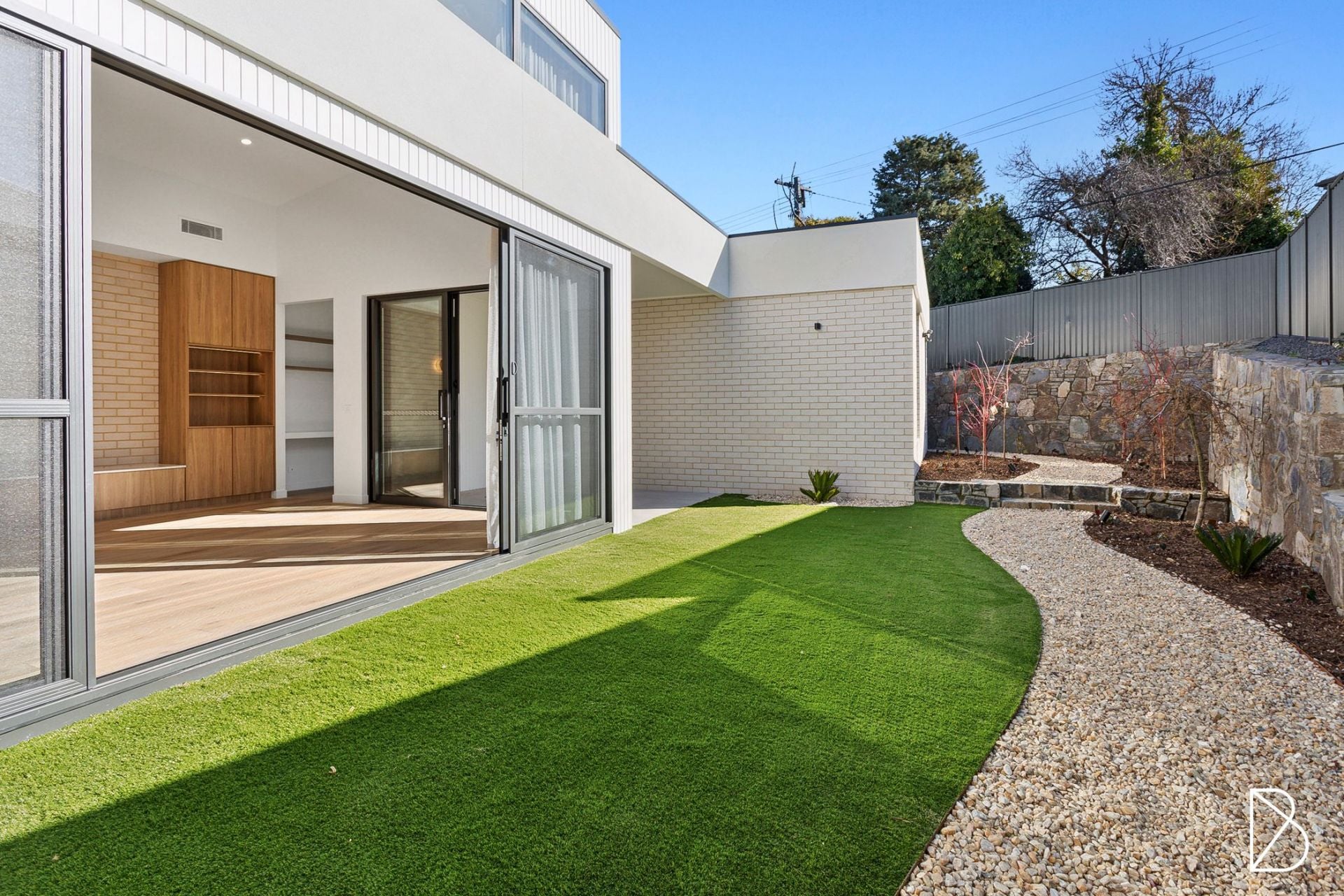 - Easy-to-maintain yard with artificial grass