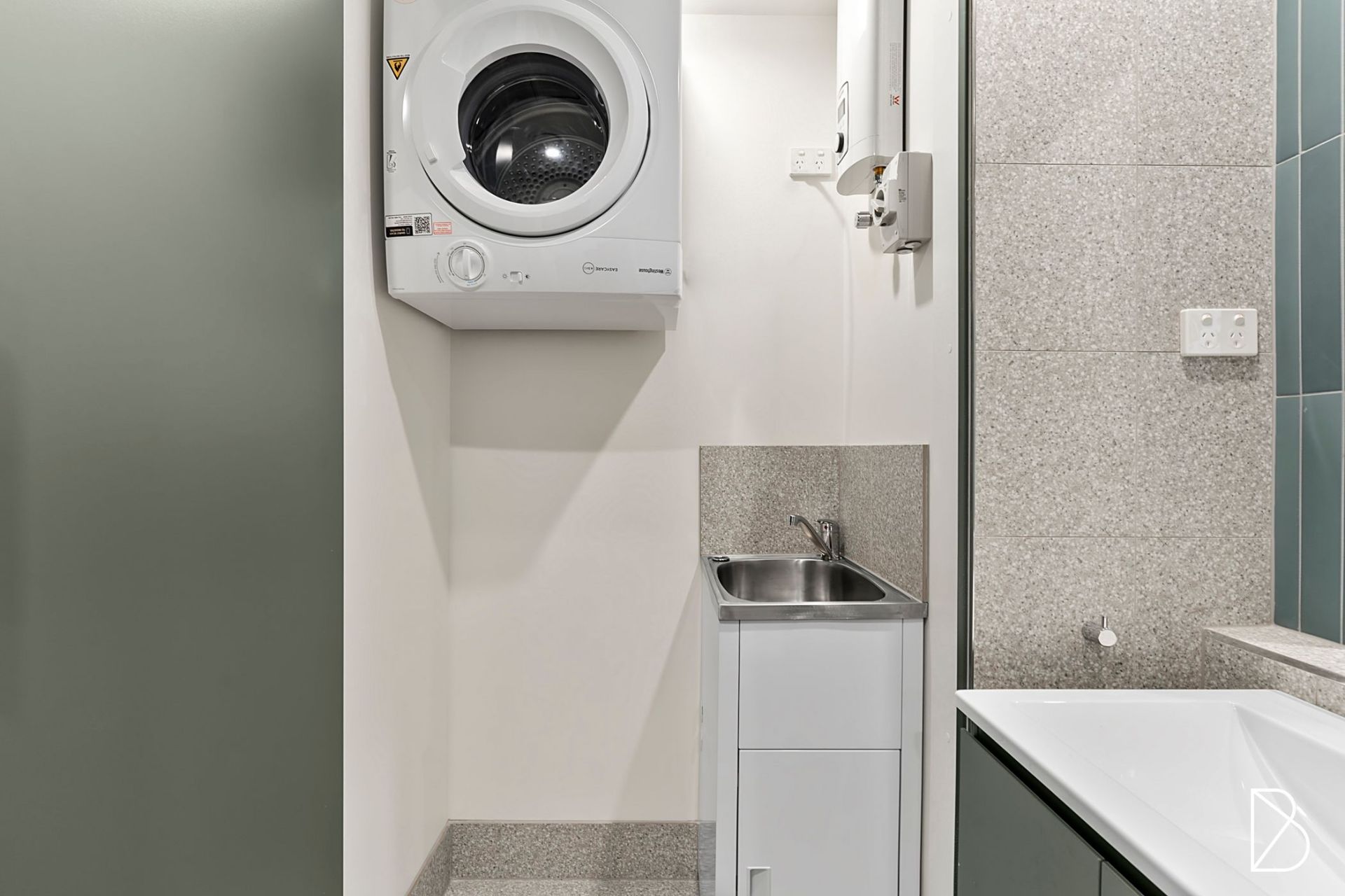 The kitchen features electric cooking and top-of-the-line appliances that effortlessly blend style and functionality. An added convenience is the European laundry with quality appliances, including a dryer, making laundry day a breeze.