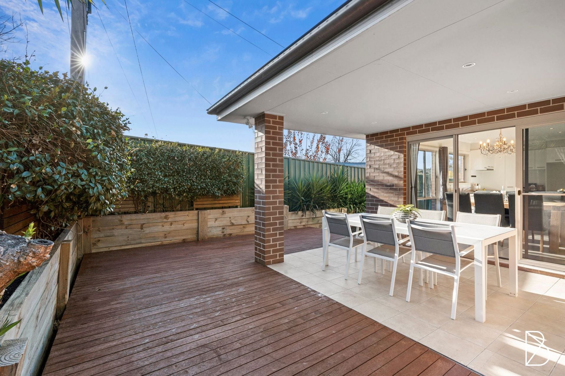- covered alfresco entertaining area under roofline