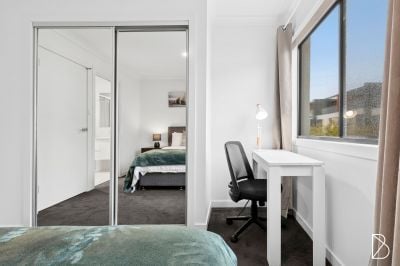 Located in the sought-after suburb of Lawson, 54/2 Rouseabout Street offers a lifestyle of ease and convenience with nearby access to local shops, public transport, and parklands. This stylish home boasts an open plan living and dining area that flows effortlessly to a private, enclosed courtyard - ideal for alfresco dining or relaxed outdoor living. The well-appointed kitchen is a highlight, featuring stone benchtops, a breakfast bar, gas cooktop, tiled splashback, dishwasher, and ample storage behind sleek two-tone cabinetry.