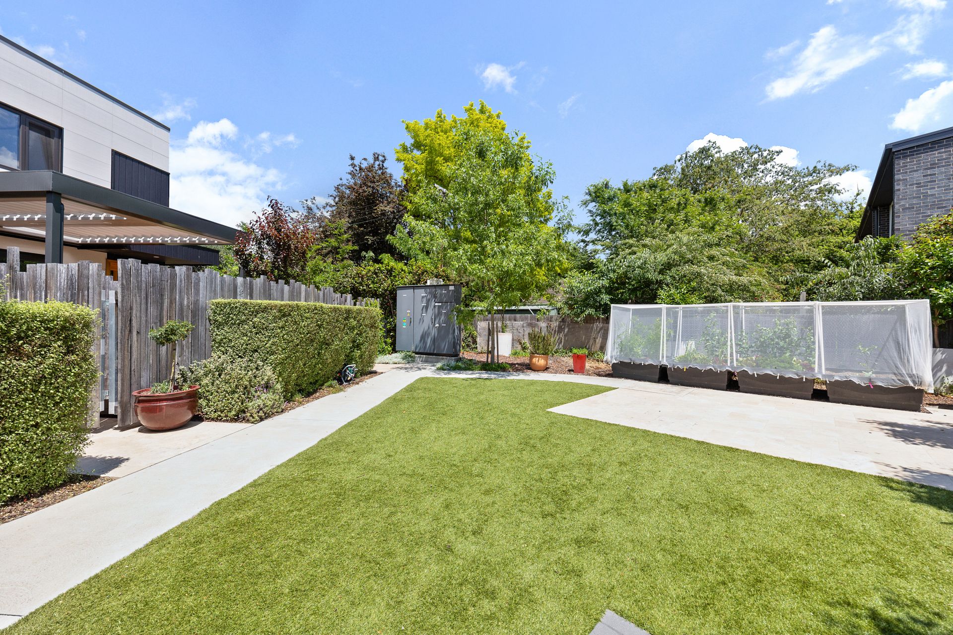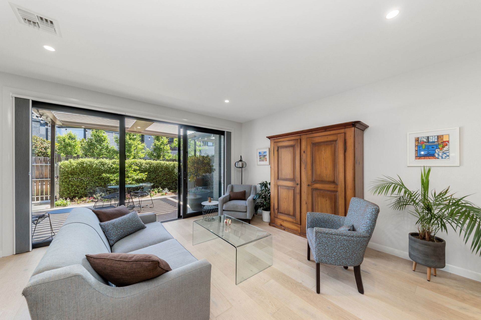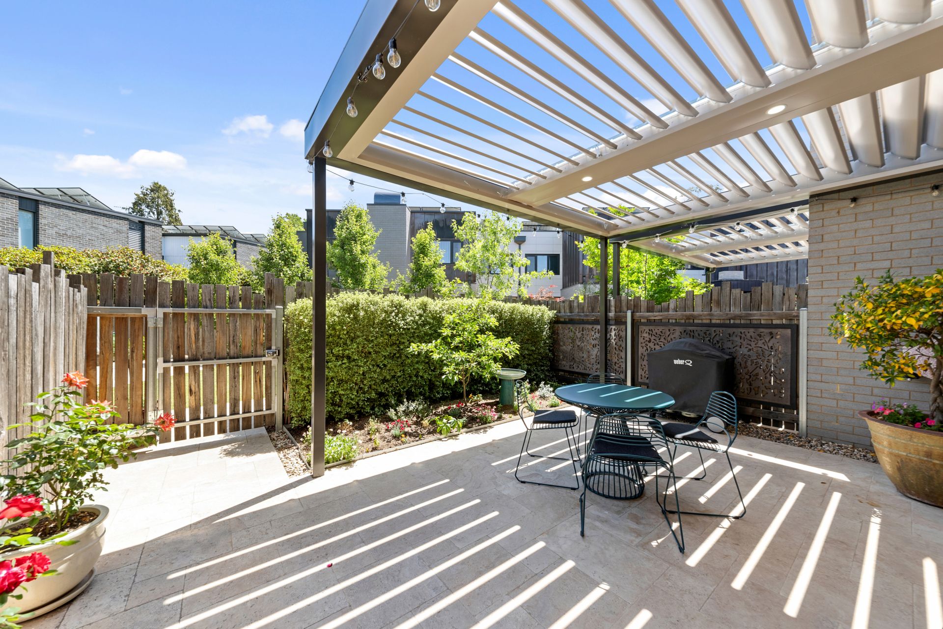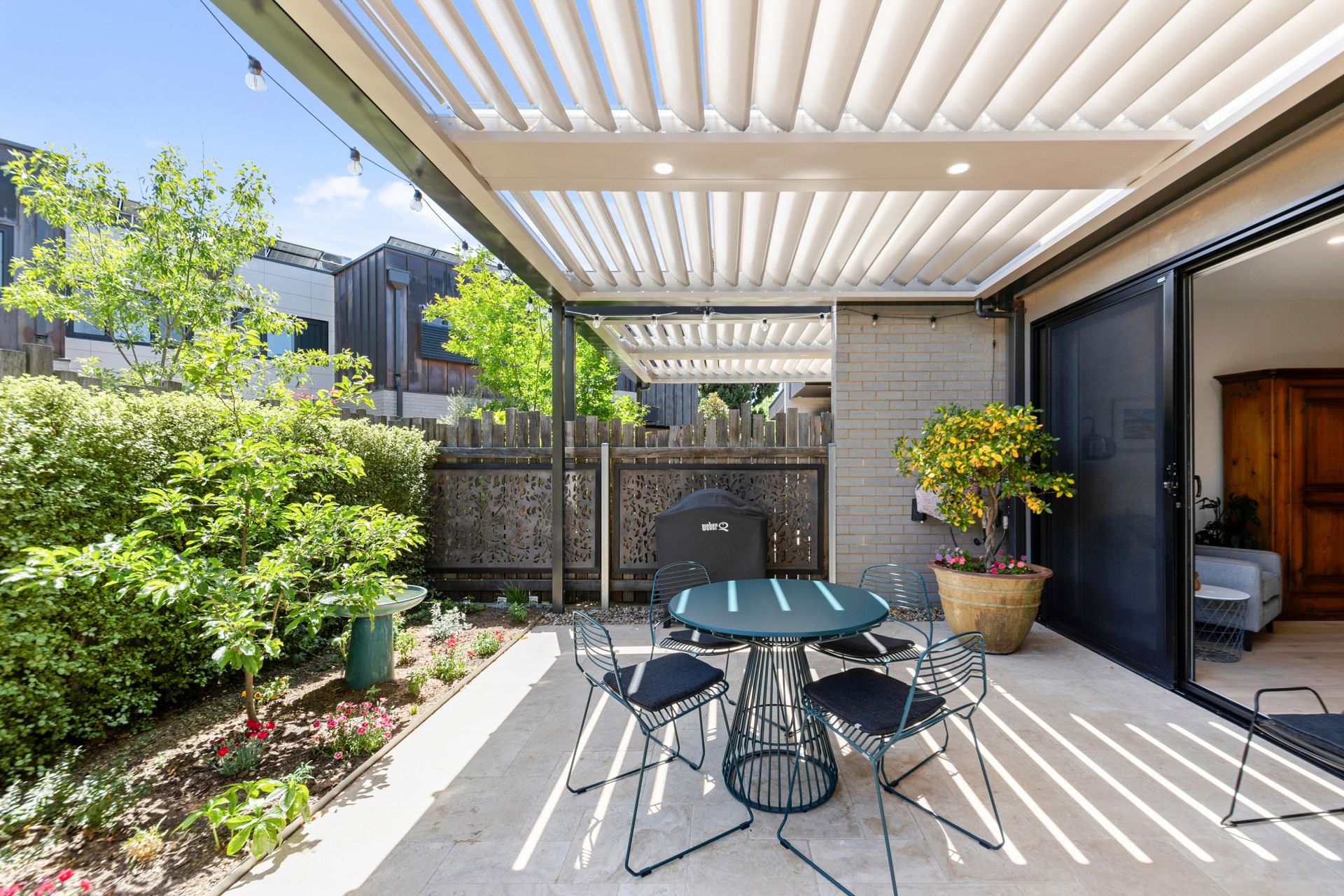 • Expansive open-plan living and dining areas flowing to a north-facing, landscaped courtyard with custom electric Vergola (installed 2023)