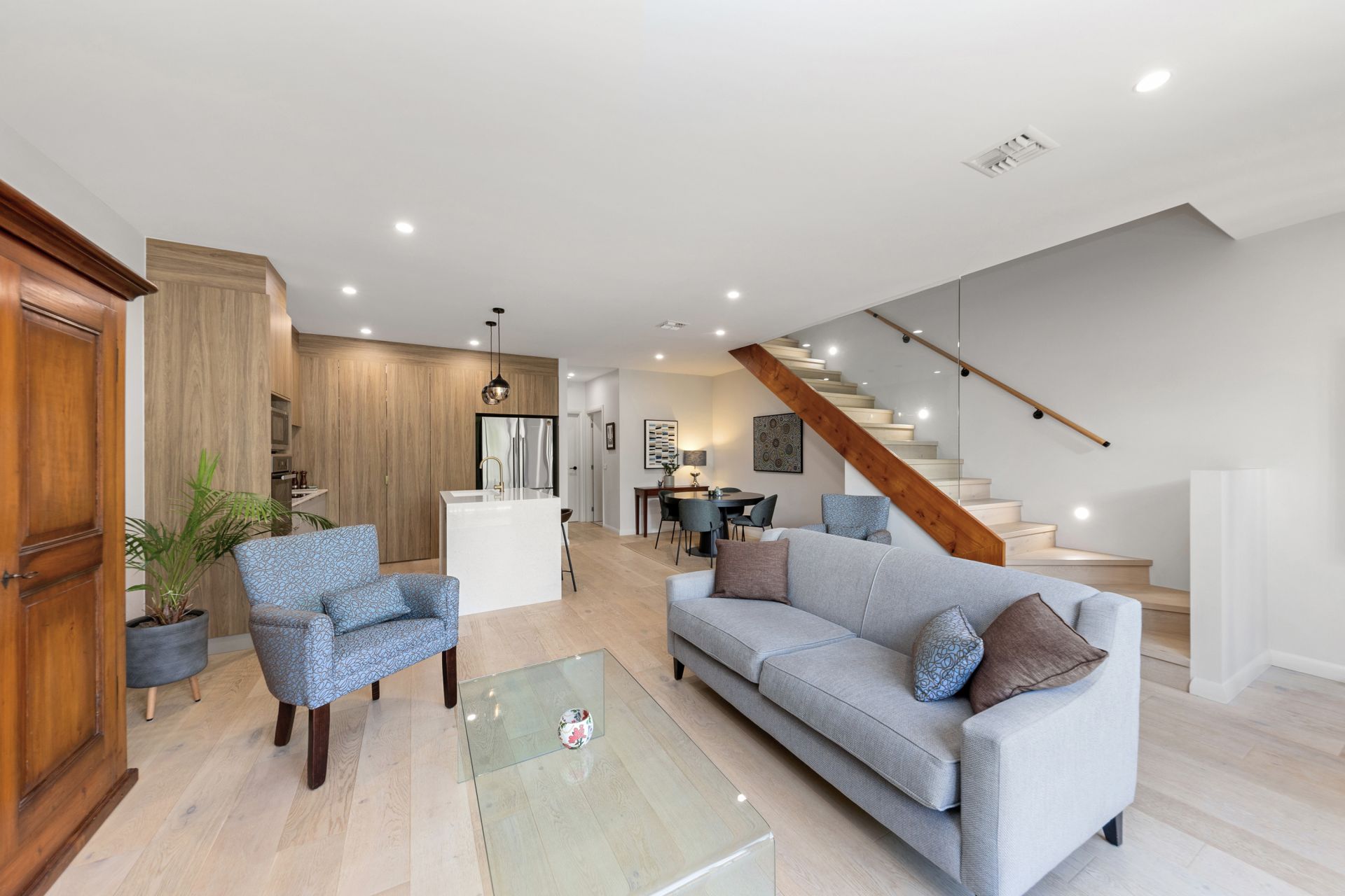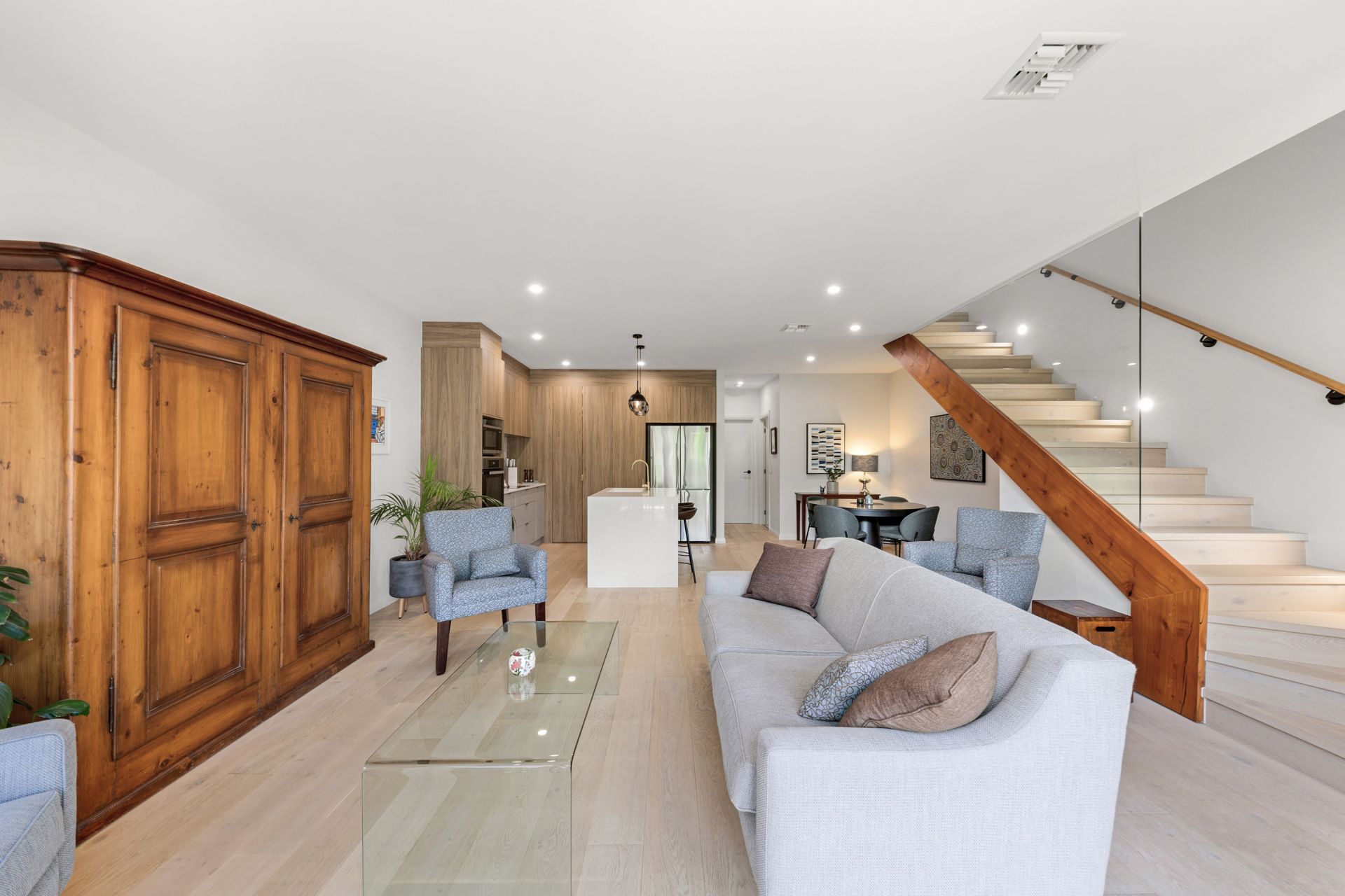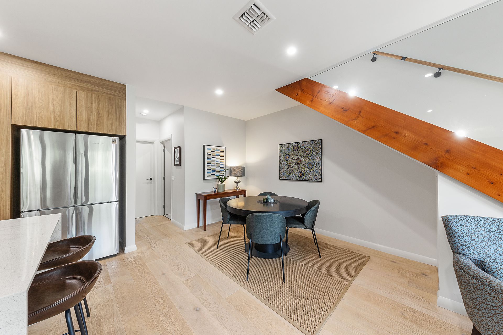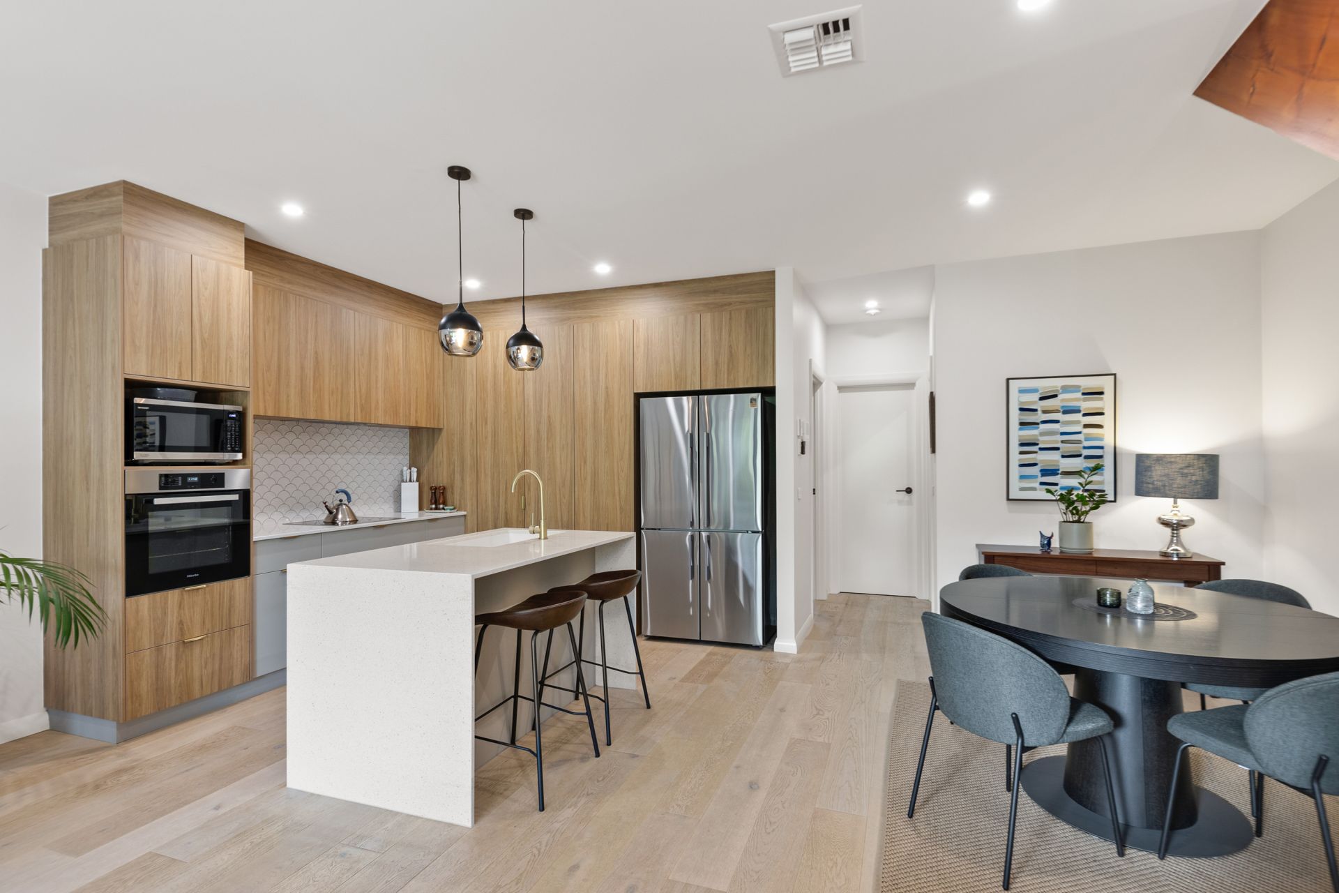 • Engineered timber flooring, Nordic waffle blinds, European double-glazed windows, and ducted reverse-cycle heating and cooling