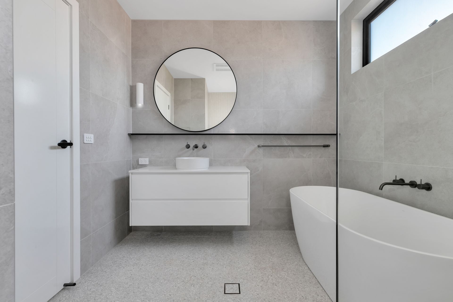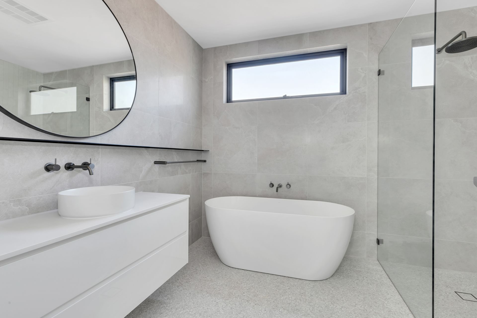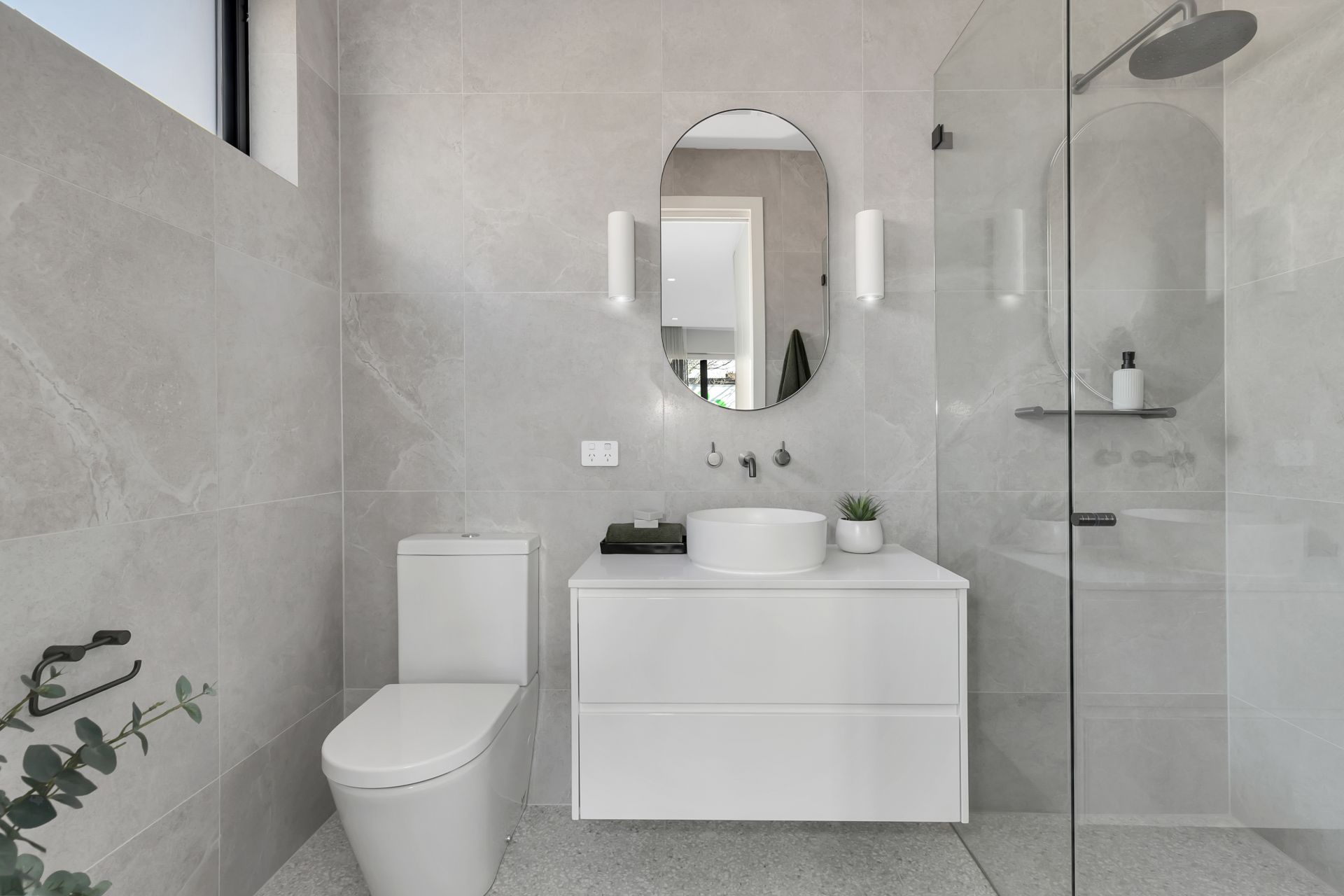 The thoughtful layout includes four well-sized bedrooms, with one conveniently positioned downstairs, ideal for downsizers or guests. The main bedroom features a luxurious ensuite, while the remaining bedrooms upstairs with built-in robes. The full bathroom upstairs and an extra wet closet downstairs ensure ample facilities for all residents.