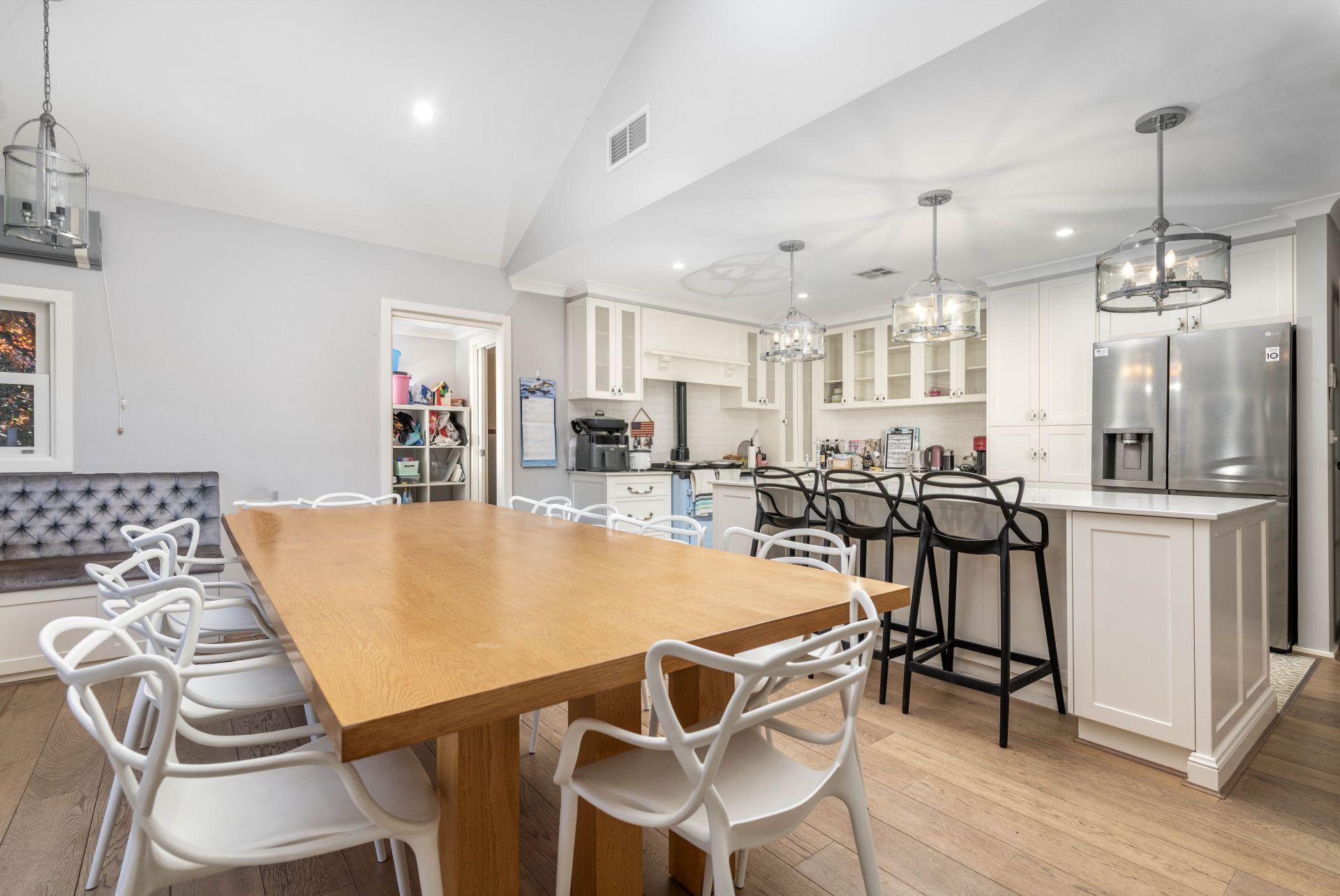As you approach the home, a wide, welcoming porch invites you in, framed by established roses and manicured hedges, setting the tone for what lies beyond. Stepping inside, you're met with high ceilings, timber floorboards, and solid construction that speaks to the home's enduring quality and craftsmanship. The thoughtful floor plan flows effortlessly from formal lounge and dining spaces to more casual living zones, creating flexibility for family life or sophisticated entertaining.