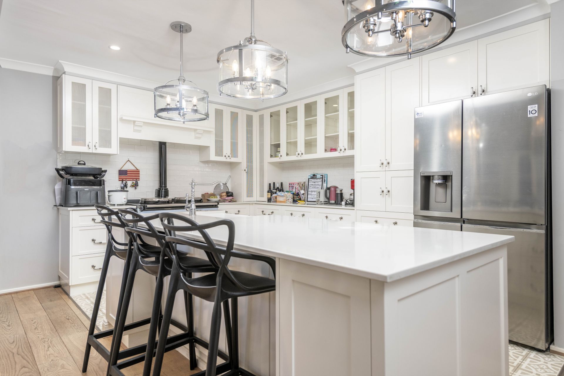 At the heart of the home, a beautifully appointed kitchen is a true standout. Featuring the signature AGA oven and cooktop, it provides a nod to classic country-style living, while offering everything needed for modern-day functionality. Adjacent living areas are bathed in natural light, drawing in leafy garden outlooks and opening onto a generous alfresco space perfect for summer entertaining or a quiet morning coffee.