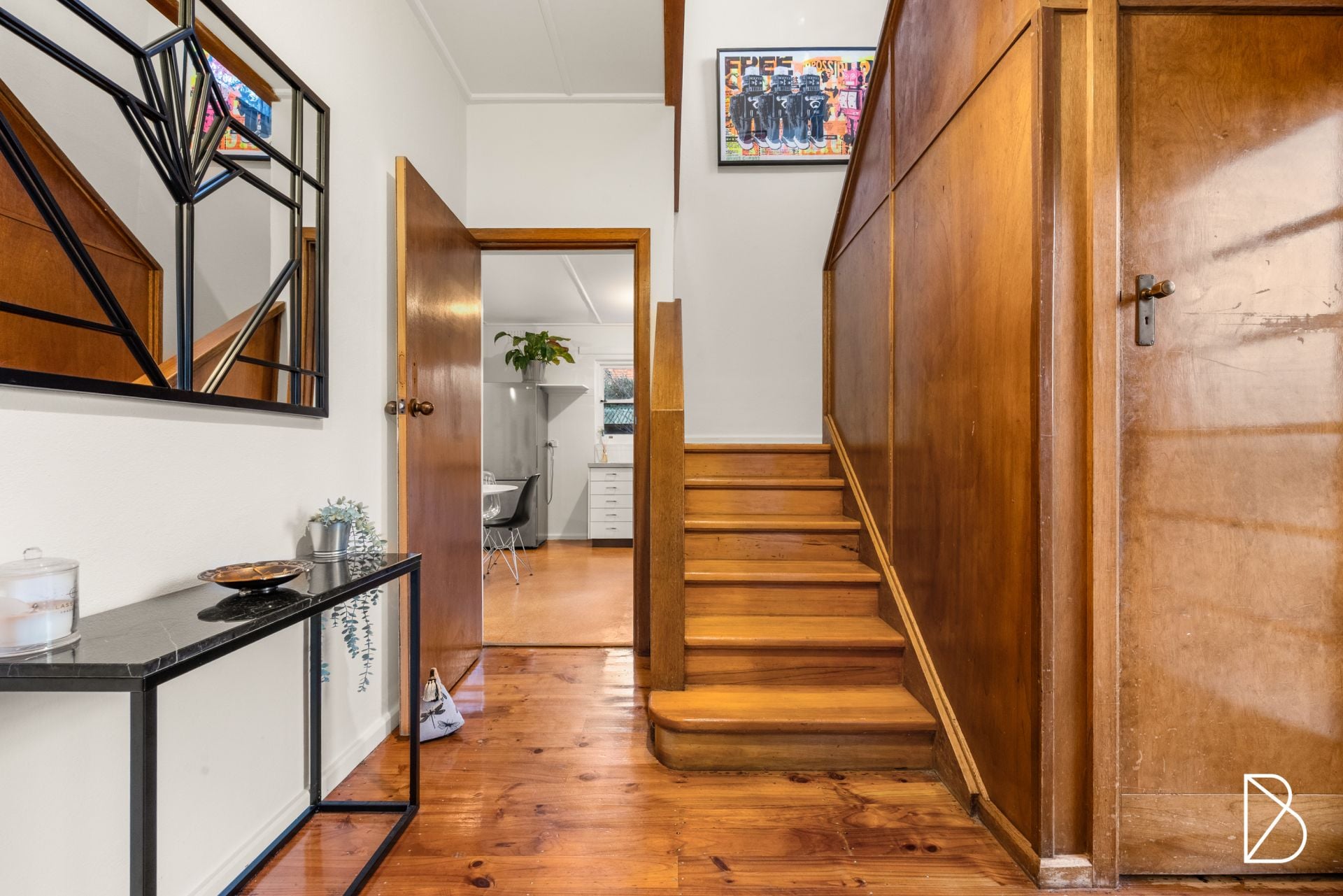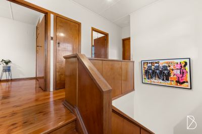 Inside, be inspired by the original timber panelling, sash windows and pine flooring, offering warmth, charm and an inviting ambience. A wrap-around, formal living space flows into a large kitchen/meals area, with access onto the timber entertaining deck overlooking the spacious backyard. Upstairs, three large bedrooms offer leafy outlooks and are serviced by an original bathroom. Outside, the established gardens offer a large, private space, with a separate double garage currently utilised as a rumpus.
