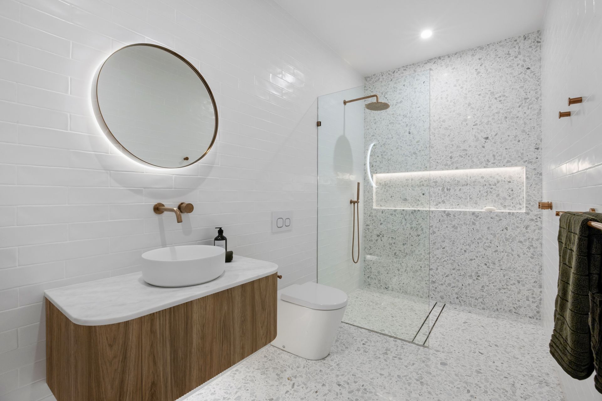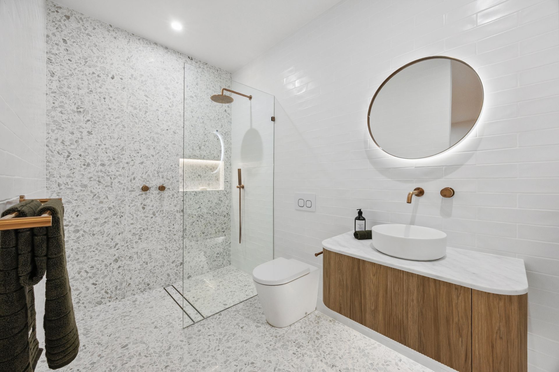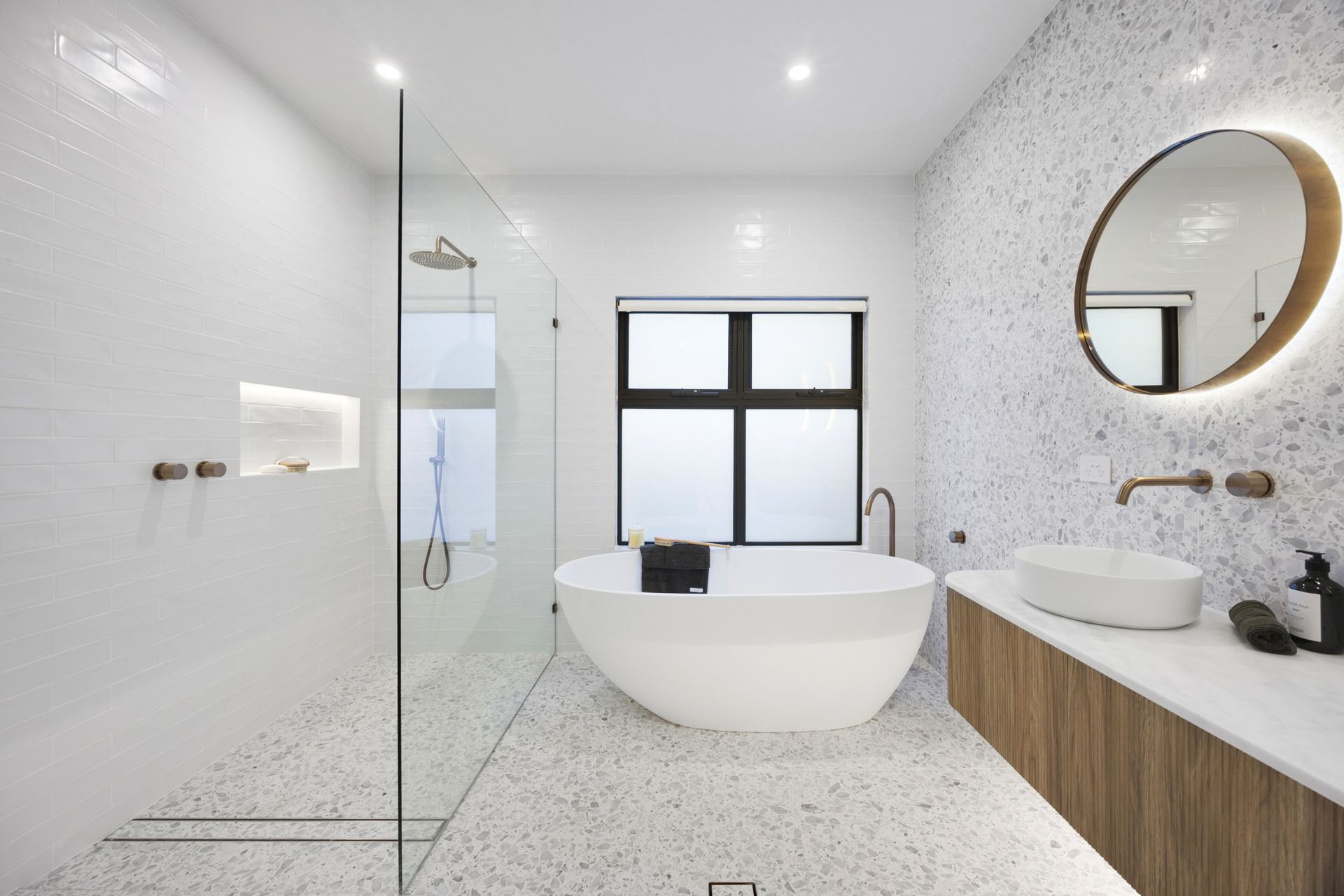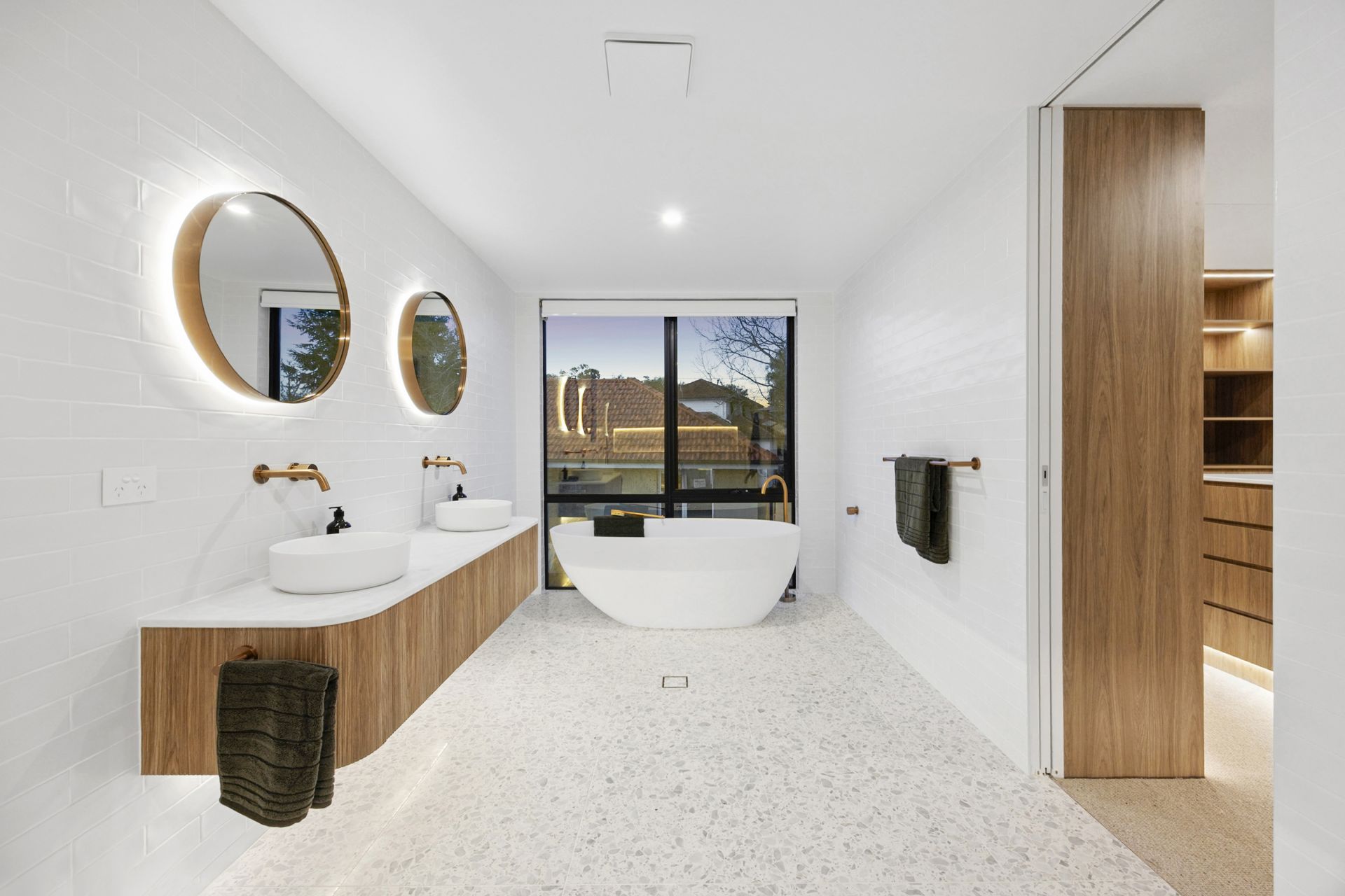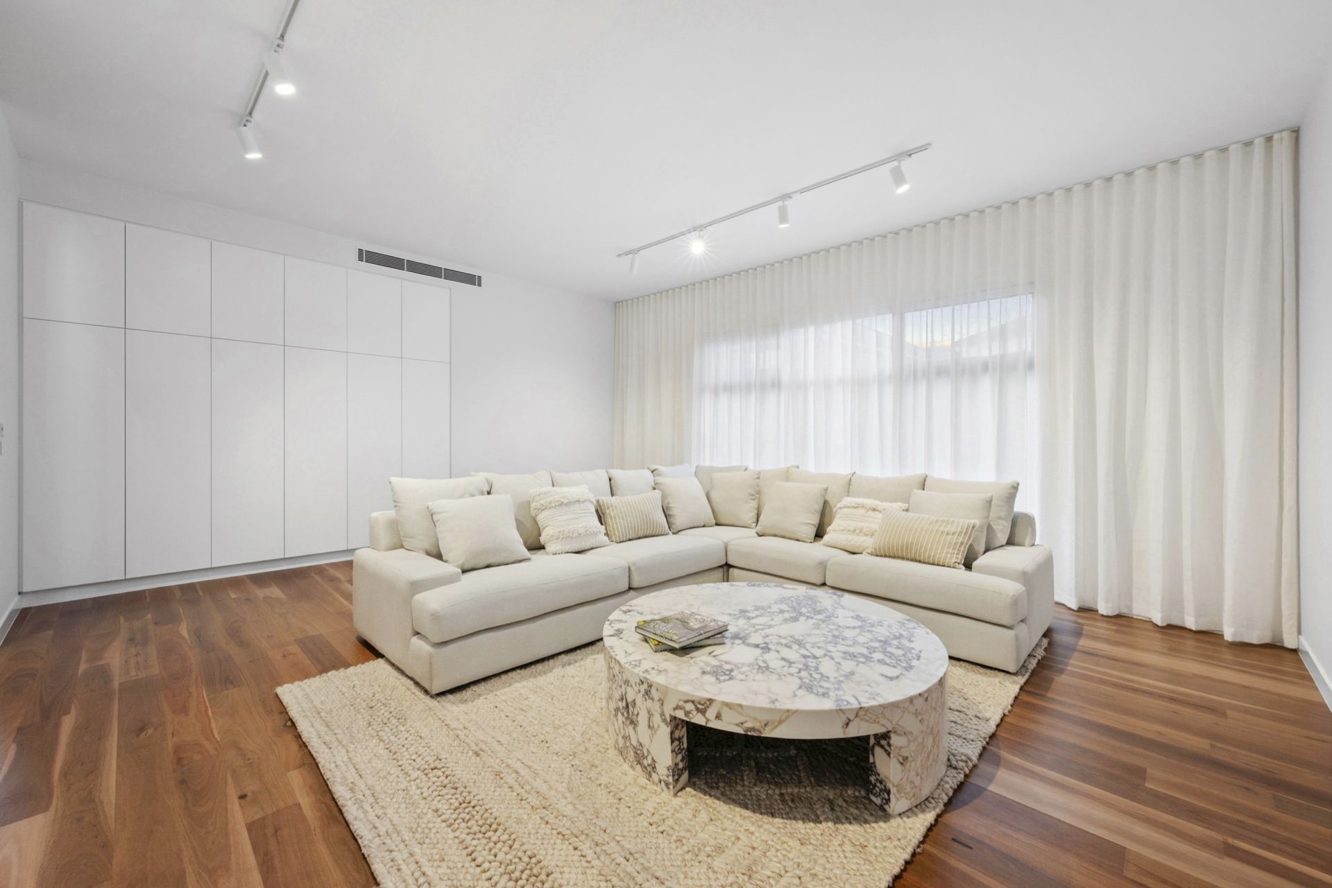 • Ducted reverse cycle heating and cooling, under tile heating to bathrooms and integrated gas fireplace