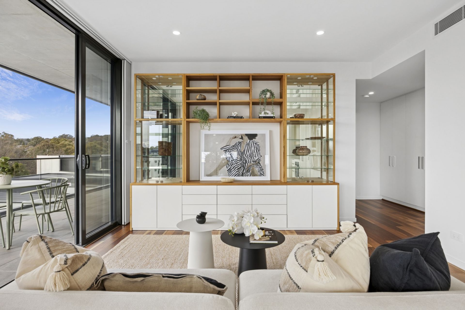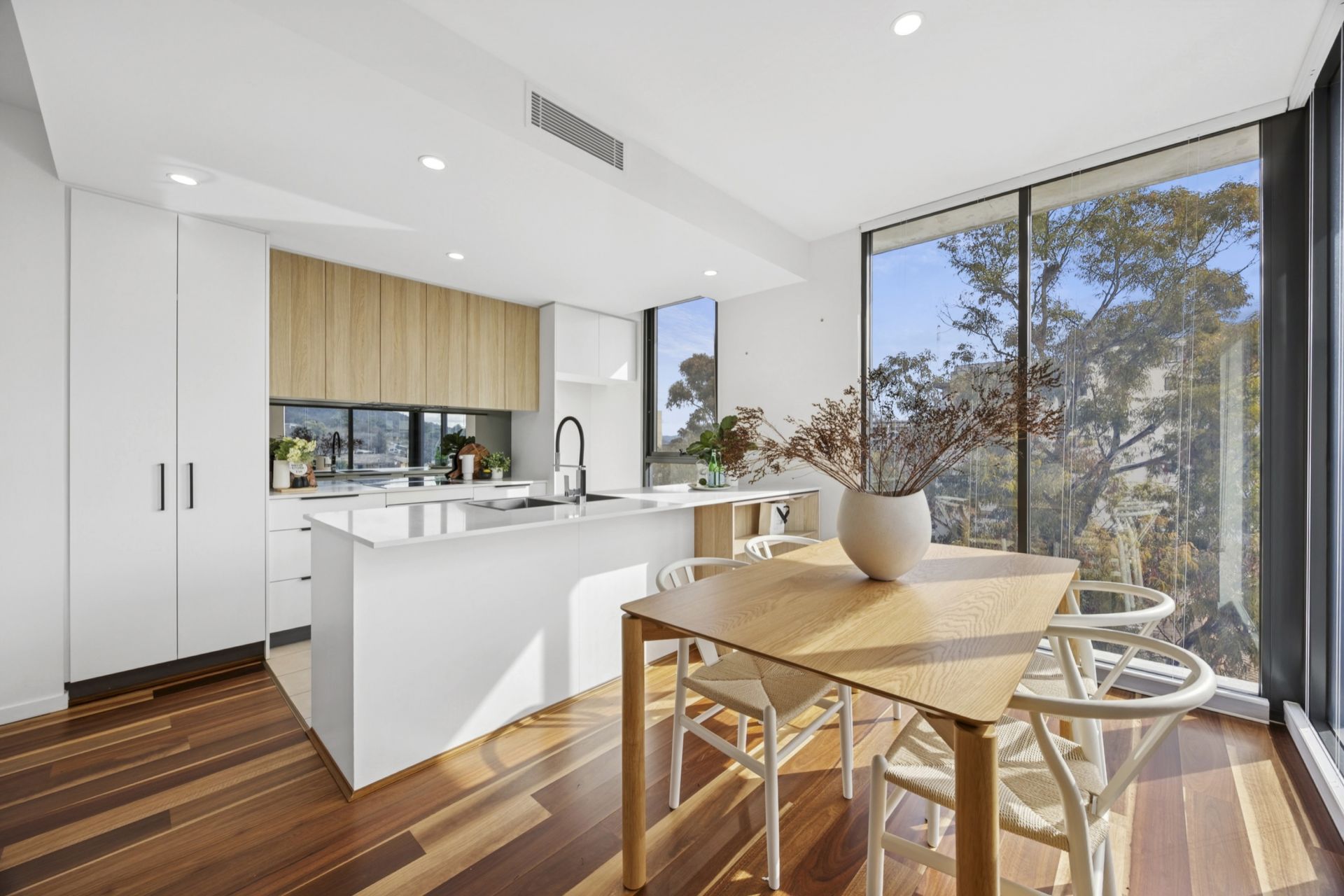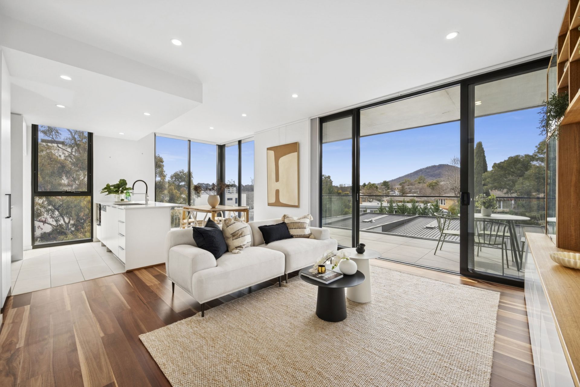 • Generous open plan living and dining, with northerly orientation and opening out to undercover balcony with views to Mount Ainslie