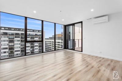 This stunning apartment boasts large floor-to-ceiling windows and glass doors in both the living areas and bedrooms, allowing natural light to flood the space and offering spectacular views. The open plan living and kitchen area features stylish hybrid flooring, while the bedrooms are comfortably carpeted.