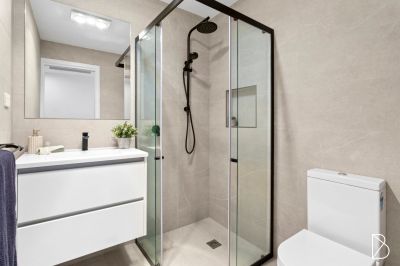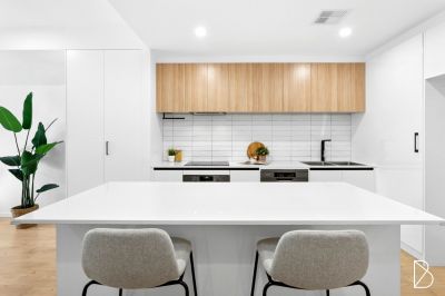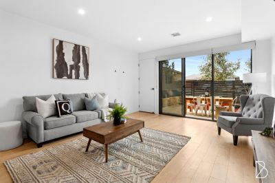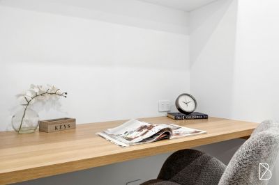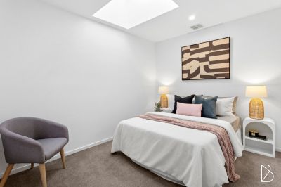 The layout is intuitive. From the front courtyard, double sliding doors blur the line between indoors and out. The open plan design flows with a quiet rhythm from living to dining, from dining to kitchen, and from kitchen to study. Beyond, a private rear courtyard links the home with a single garage and allocated car space. Upstairs, three thoughtfully arranged bedrooms provide an impressive amount of functional accommodation. The master, which overlooks the front courtyard below, features an ensuite and generous built-in robes. The second bedroom is softly lit by a skylight, and similarly to the third that is situated above the rear courtyard, enjoys plenty of hanging and shelving space behind the mirrored glass of the built in wardrobes.