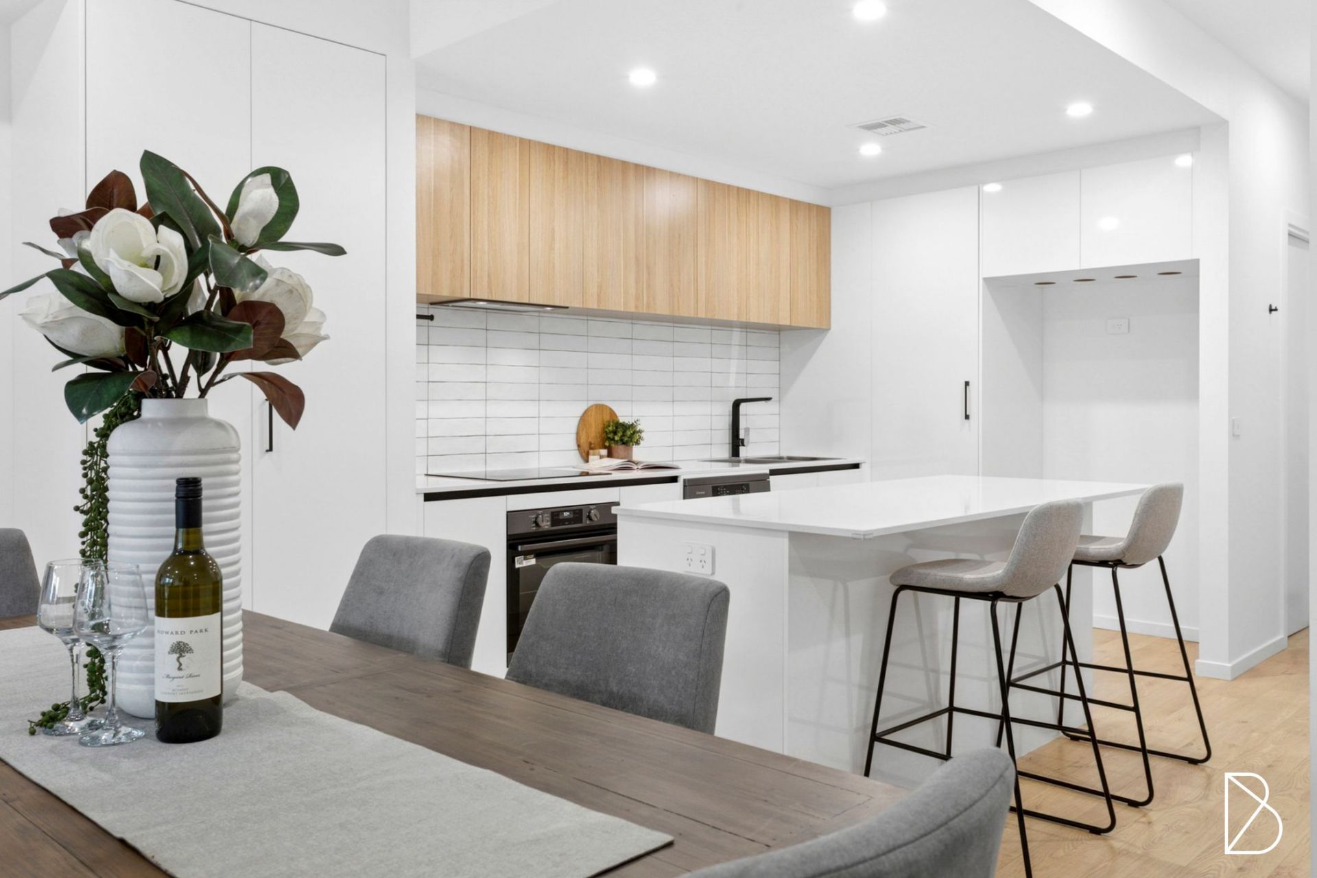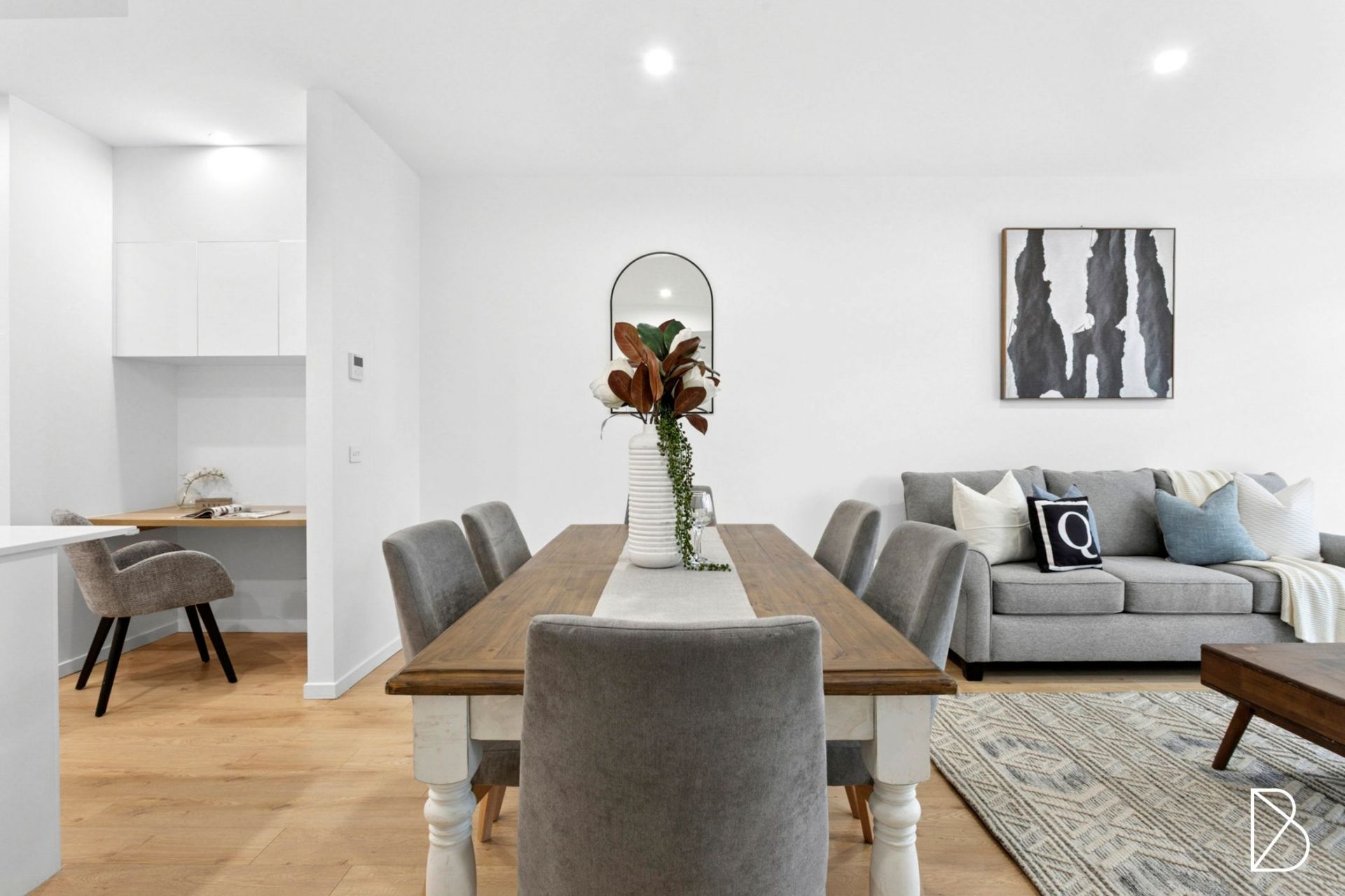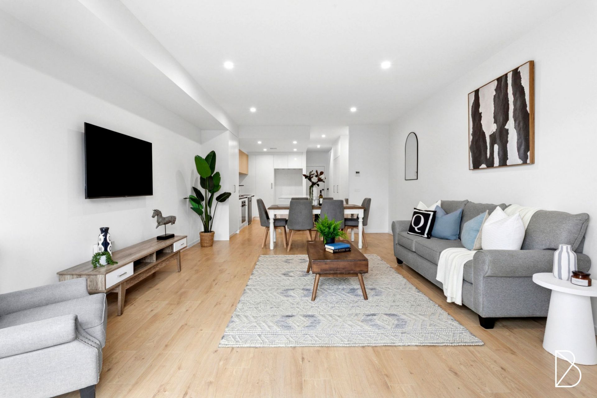 - Open-plan living and dining with engineered floating floors