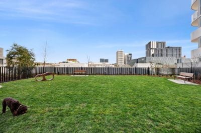 The generously sized bedroom includes a built-in wardrobe, while the stylish bathroom offers quality finishes and a discreet European-style laundry for added convenience. Ample internal storage is further complemented by a secure basement storage cage and one allocated car space with remote access. Residents also enjoy access to a suite of luxury amenities, including a 25-metre heated indoor pool, fully equipped gym, cinema, co-working lounge, and over 3,000m² of beautifully landscaped gardens. With full building security, video intercom, and pet-friendly spaces including a dog park and BBQ zones, this is low-maintenance living with lifestyle appeal at its finest.