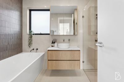 Accommodation is equally impressive, with a private main suite featuring a walk-in robe and ensuite, while three additional bedrooms upstairs and a fifth on the lower level all include built-in robes. A family-sized bathroom with bathtub and separate powder room service the upper floor, complemented by an ensuite to the main suite and a full additional bathroom downstairs. The lower level also features a fully self-contained retreat with its own kitchen and living/dining area, ideal for extended family or guest accommodation.