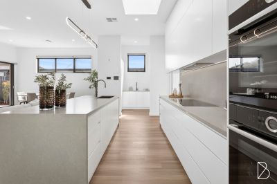 • Designer kitchen boasting stone benchtops, with waterfall edge island bench, quality all-electric appliances, walk-in pantry, and ample storage, perfectly placed at the heart of the home
