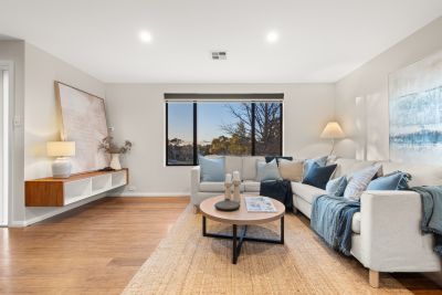 Beautifully renovated by its current owners and designed to offer a relaxed, modern lifestyle in the heart of Belconnen, this home is a gem. Set on the high side of the street and enjoying views to the adjacent parkland, the home's imposing facade sets the scene for what's inside. Finished in neutral tones and showcasing an excellent attention to detail, the open floor plan will appeal to the growing family. A renovated kitchen overlooks the living and meals area, flowing seamlessly into the covered entertaining area and family-friendly back garden. Four good-size bedrooms are serviced by two updated bathrooms, finished to a high standard and ready for immediate enjoyment. Outside, an over-sized double garage is flanked by ample off-street parking, ideal for larger or recreational vehicles. Positioned within easy commute to Belconnen Town Centre and Gininnderra Creek, this family home will capture your attention!