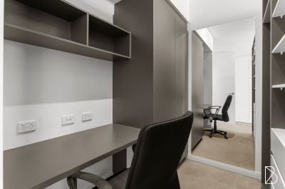 Enjoy the convenience of a dedicated study nook nestled inside the generous walk-in wardrobe, perfect for those working from home or studying. The European laundry comes equipped with a washing machine and dryer, making laundry day a breeze. Step out onto your lovely balcony, where you can unwind with a view of the tranquil garden-perfect for your morning coffee or evening wind-down.