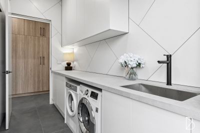 • Designer kitchen with stone benchtops, premium appliances, large island breakfast bar, butler's pantry, and excellent storage throughout