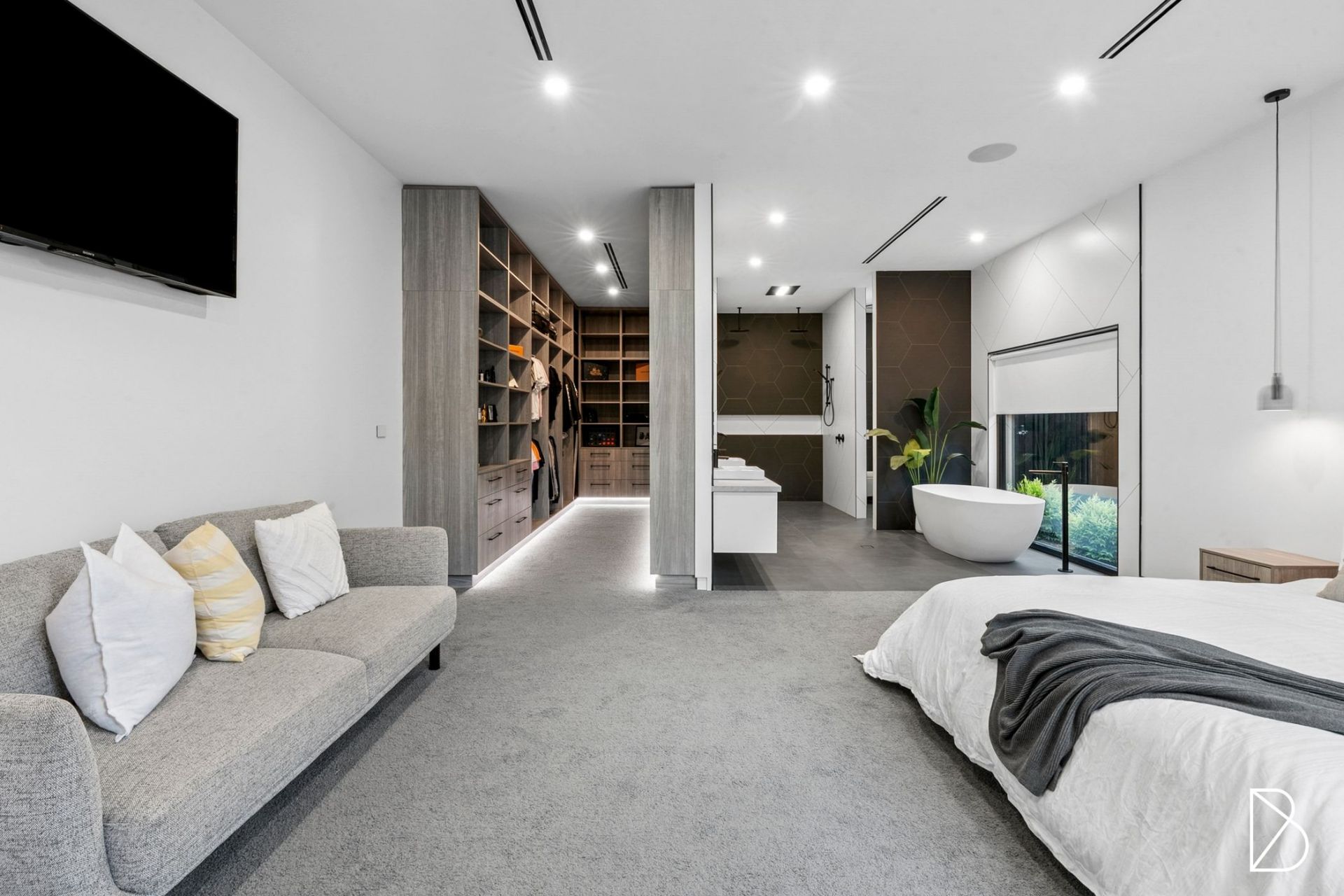 Accommodation is equally refined, with four bedrooms and 4.5 bathrooms offering space, privacy, and comfort for every member of the family. The luxurious main suite features a walk-in robe, indulgent ensuite with freestanding bath and double vanity, and direct alfresco access. A separate guest suite with its own ensuite and entry makes an ideal retreat for extended family or visitors, while two additional bedrooms share a stylish main bathroom and powder room.