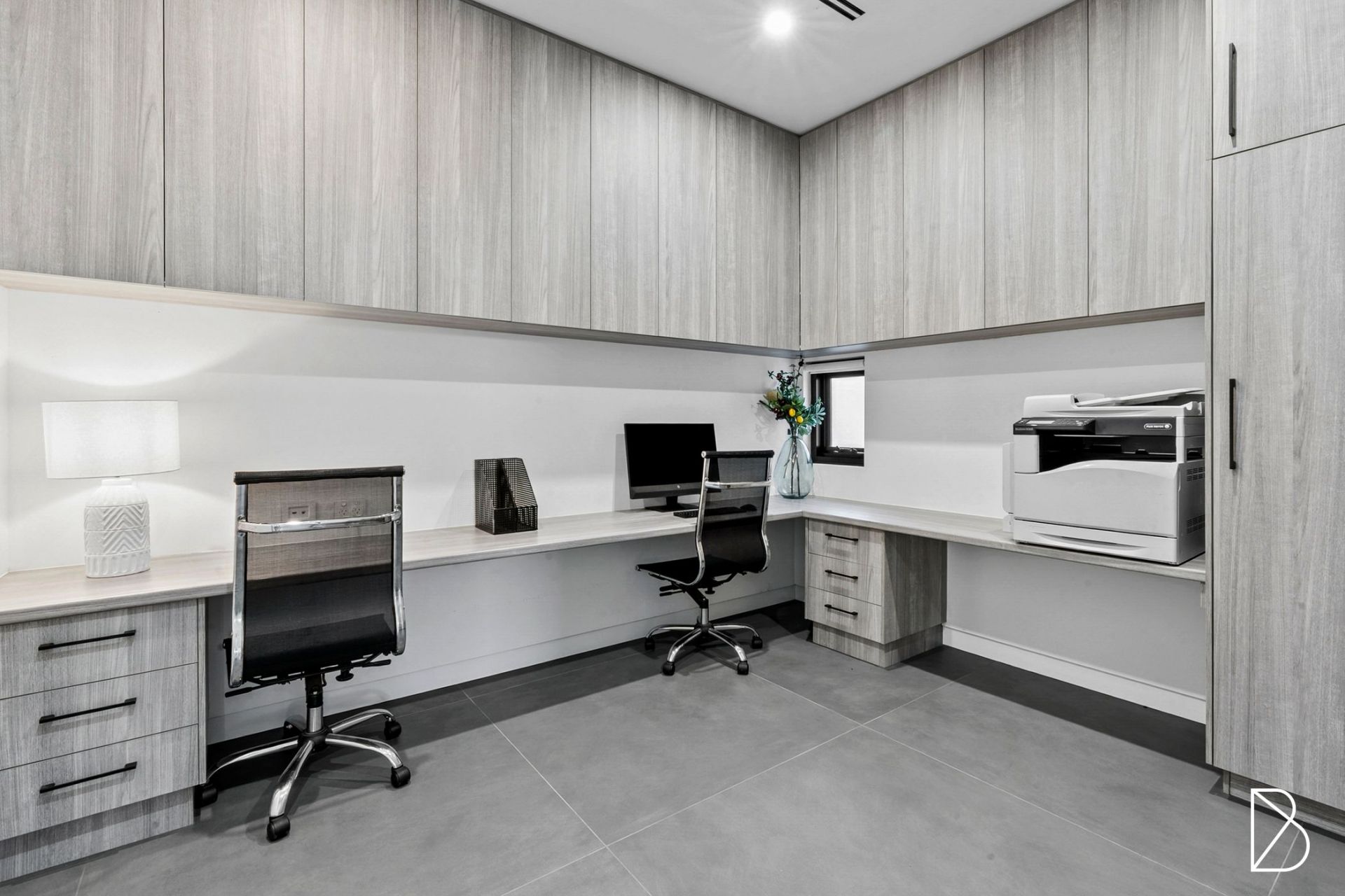 • Multiple living spaces including a formal rumpus room, dedicated study with built-in desk, and a private gym with external access
