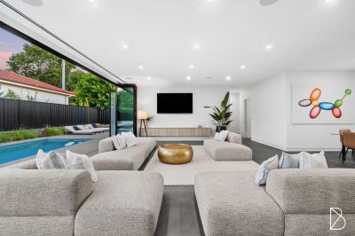Expansive open-plan lounge and dining areas flow seamlessly to the alfresco terrace with built-in BBQ and poolside entertaining zone, creating a resort-style atmosphere ideal for relaxing or hosting guests. At its heart, the designer kitchen impresses with stone benchtops, premium appliances, a large island breakfast bar, and a full butler's pantry, while multiple living zones - including a formal rumpus room, dedicated study, and private gym - provide versatility for family life and entertaining alike.
