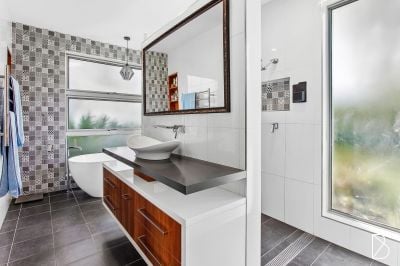 Experience the best of indoor and outdoor living. The open-plan living area flows effortlessly into the outdoor entertaining space, with expansive glass sliding doors that create a seamless connection between the indoor dining and alfresco areas. The outdoor space is equipped with electric blinds, ensuring year-round comfort in all weather conditions.