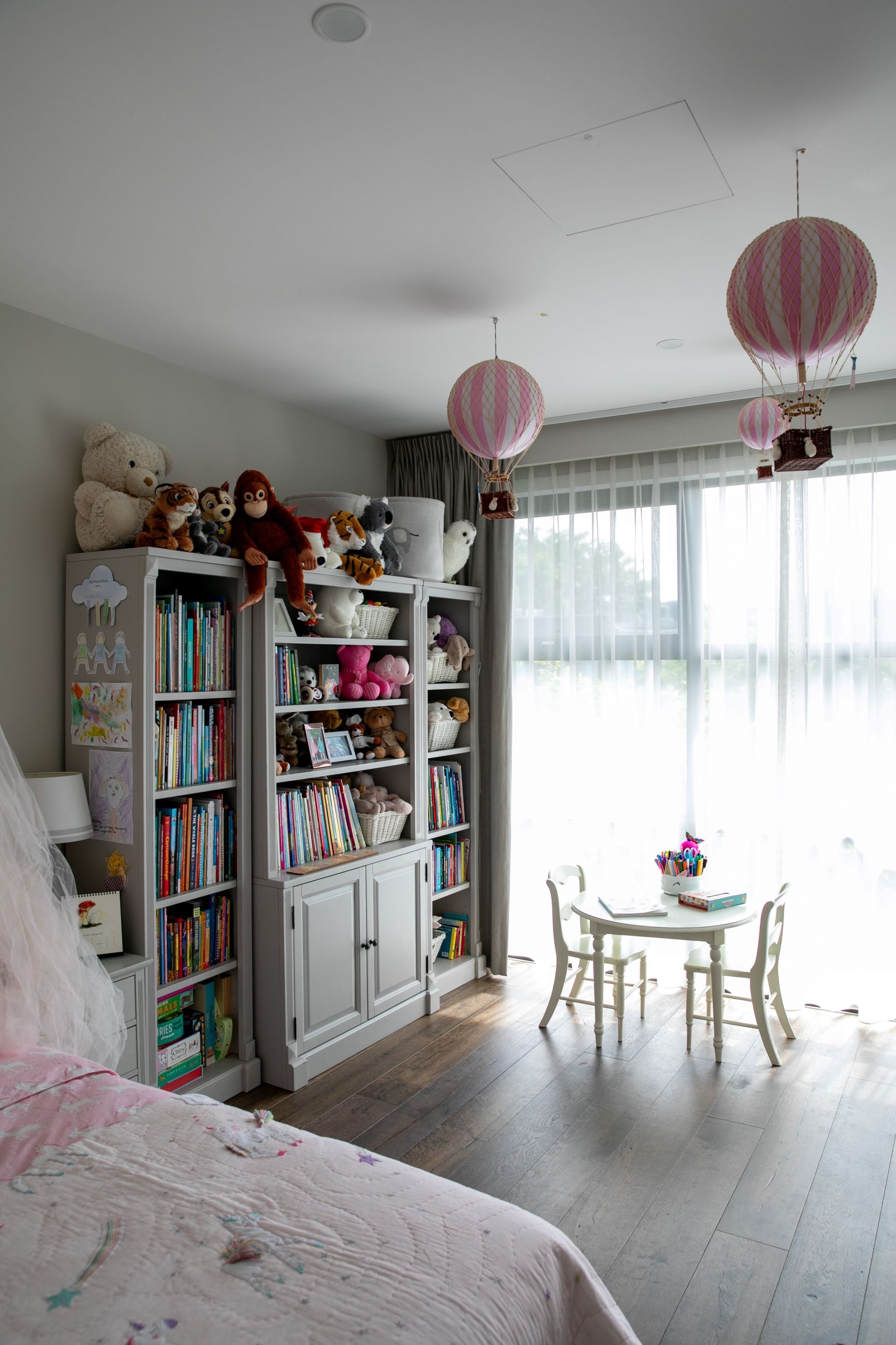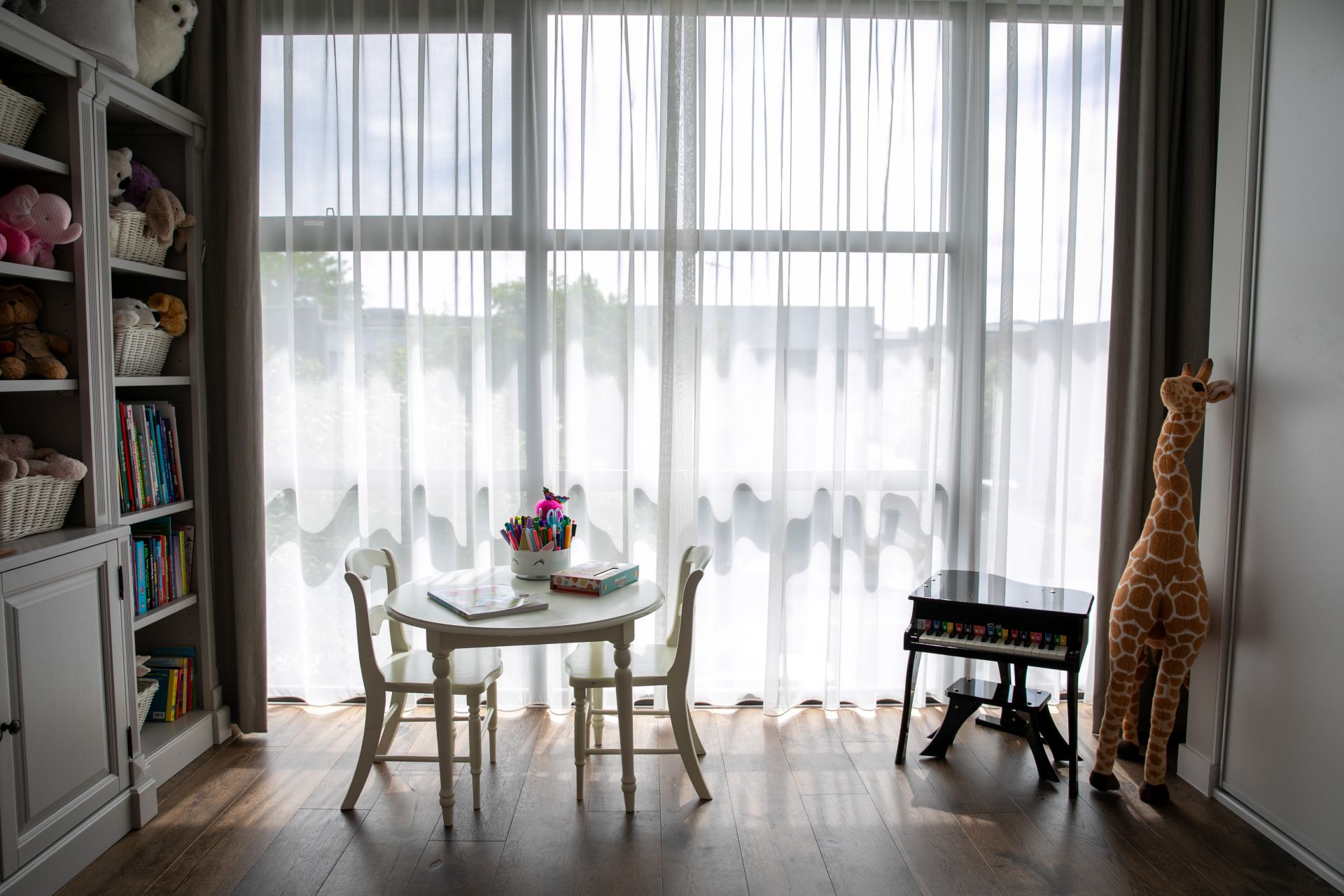 - Hardwood floorboards throughout living spaces
