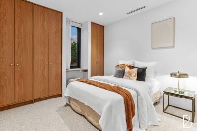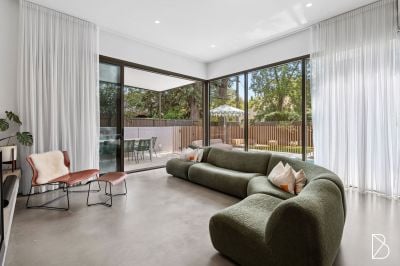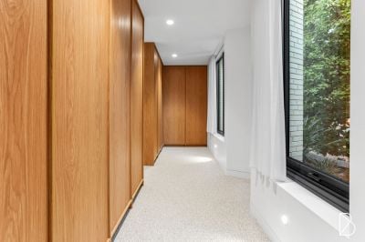 Created to support both relaxed living and effortless entertaining, the ground floor unfolds around expansive open plan living and dining, enhanced by full height double glazed windows and sliding doors that draw in natural light and connect seamlessly to the alfresco terrace, landscaped gardens and private in ground plunge pool. Anchoring the heart of the home is a chef's kitchen appointed with Breccia Pernice marble, AEG appliances, 90cm induction cooking, integrated Fisher & Paykel fridge and freezer and a generous walk-in pantry.
